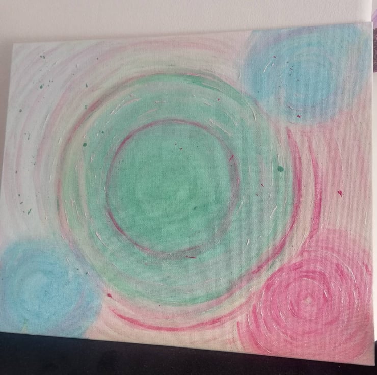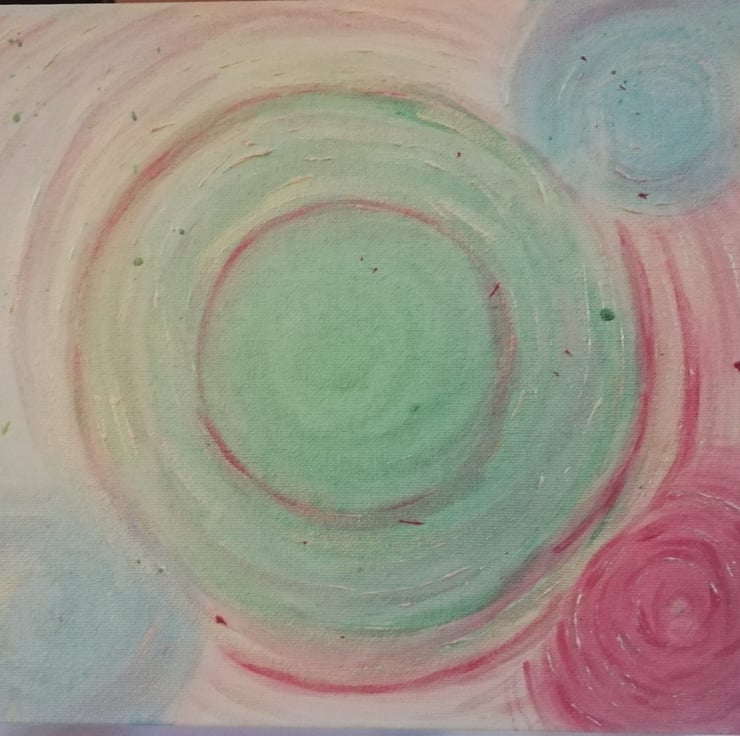 I kept this one simple. I loved the feel of the complete circle as it came out on the brush. This one seed to paint itself. There's a definite cosmic, space vibe to this one too. It could almost be called going home.