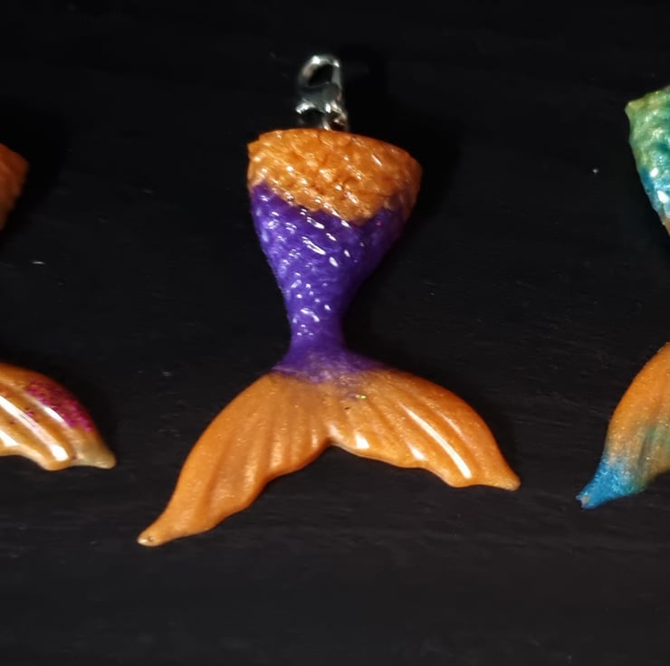 This listing is for 1 resin mermaid tail keyring. It comes with the keychain and clasp and a colour coordinated pom, tassel or matching resin seashell.