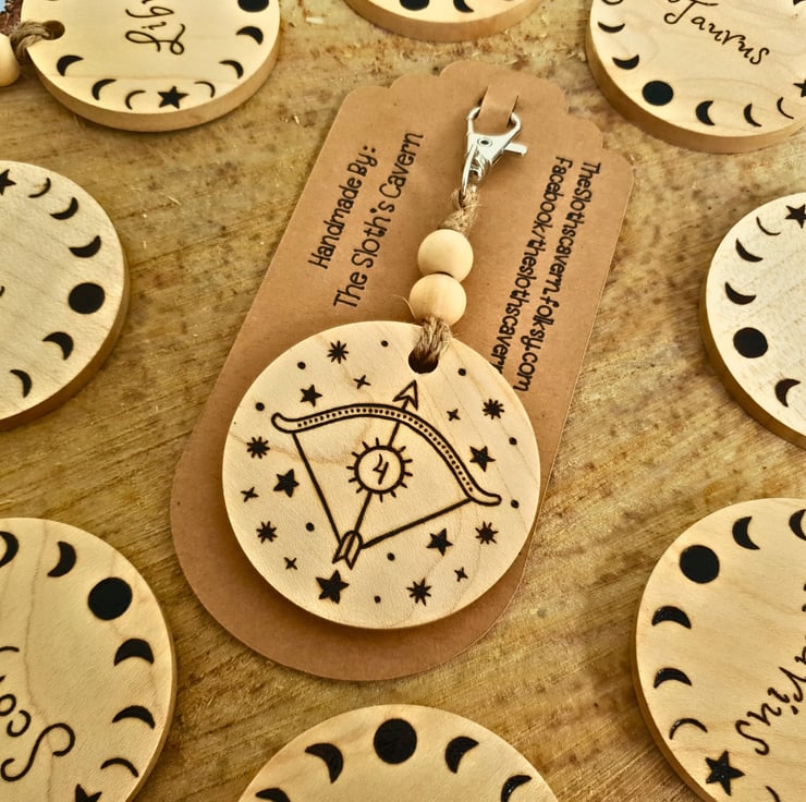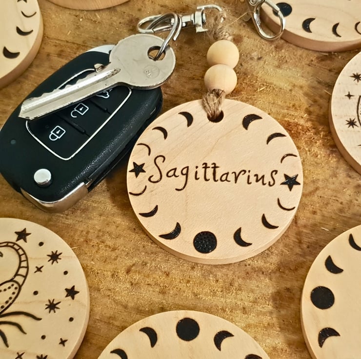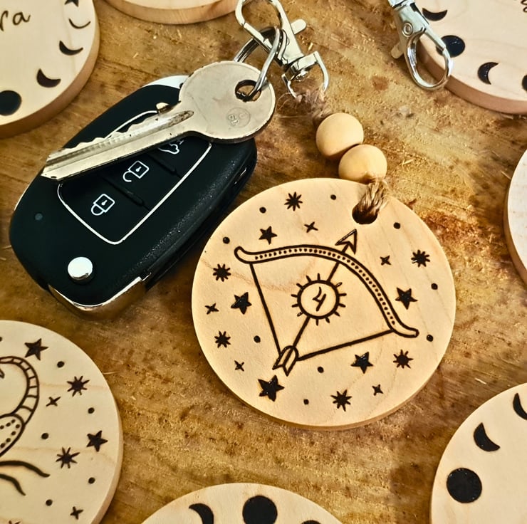 A unique present for the astrology lovers, this Sagittarius wooden keyring can be gifted all year round, or as a birthday present to someone born between November 22nd - December 21st!