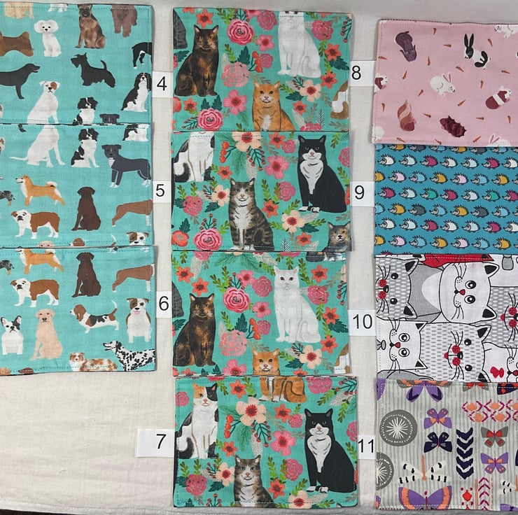 Very handy card wallet, made in cute pet animal themed fabrics and fully lined in heavier weight linen look cottons.