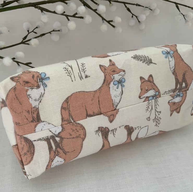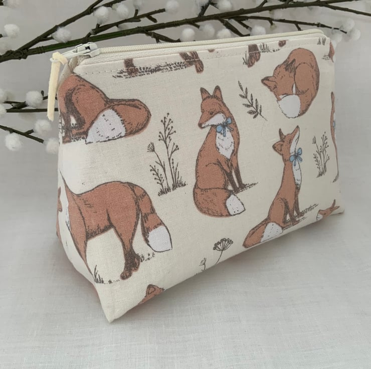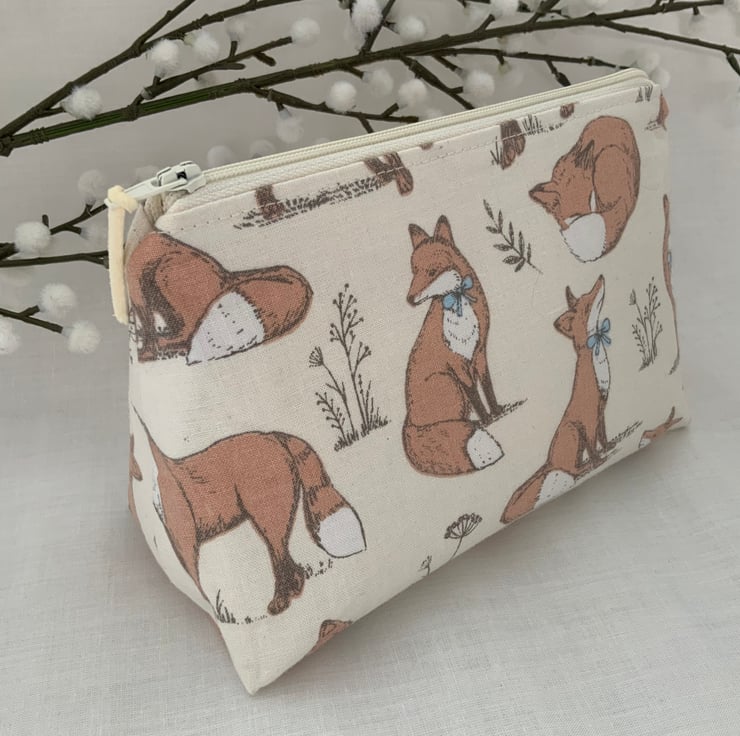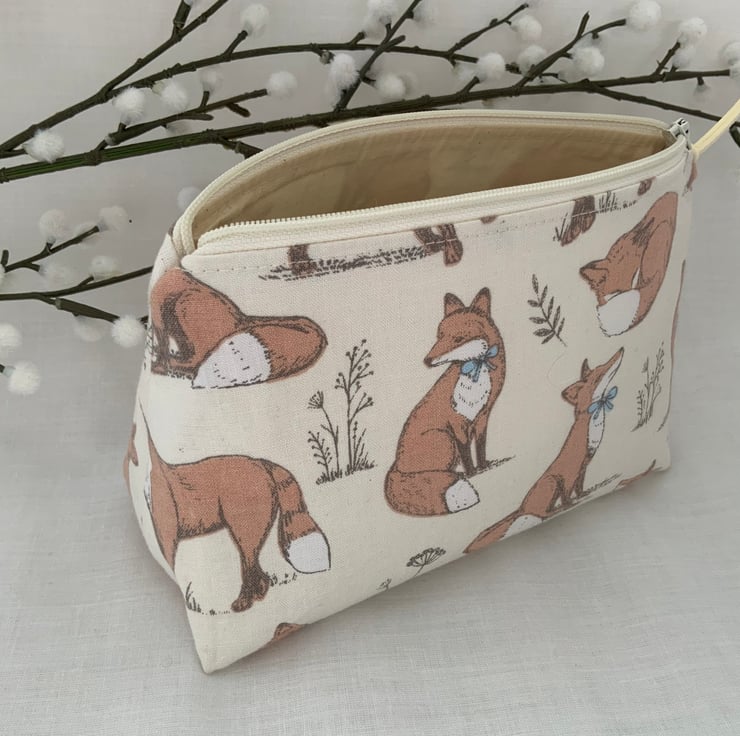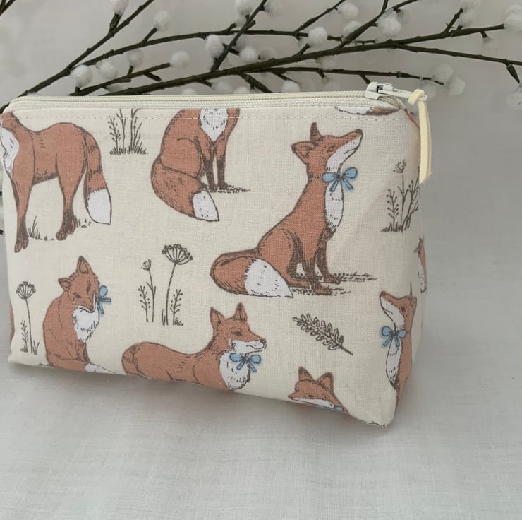 Square bottomed zipped cosmetic bags, pouch, purse made from cotton fabric and lined with coordinating cotton and interfaced to give it a little structure.