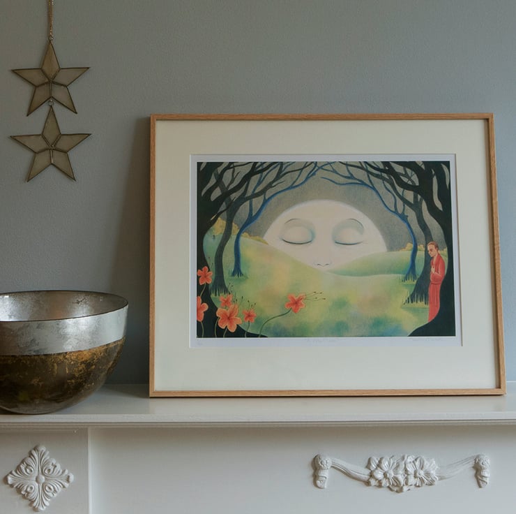 The flawless, full priced Giclee version of this piece is also available here: https://folksy.com/items/8280658-Moon-landscape-Giclee-Art-print-A-Pale-Moon-
