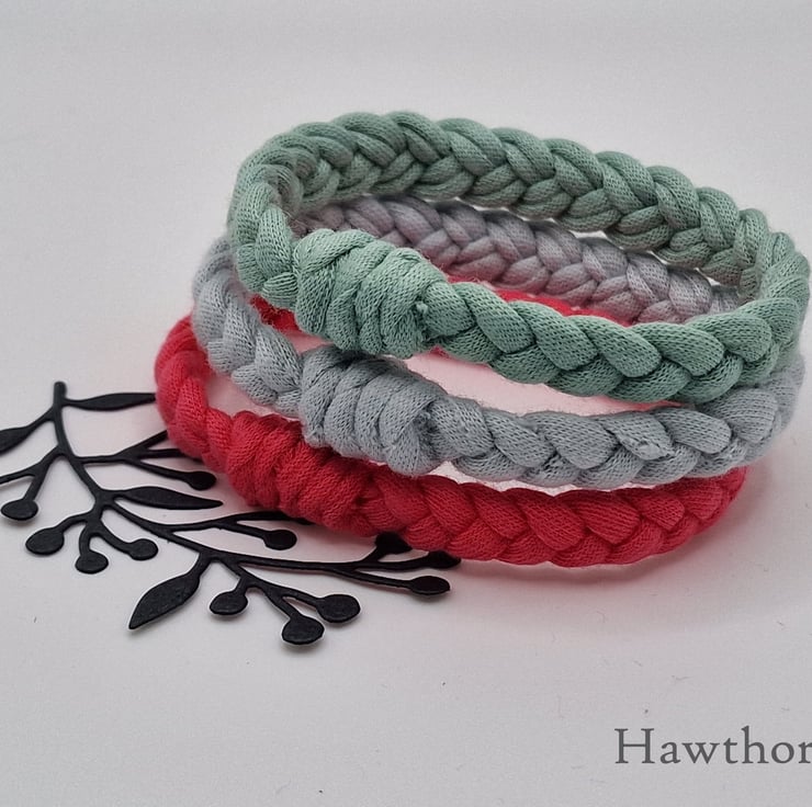 Set of 3 bracelets lovingly hand made from recycled cotton yarn.