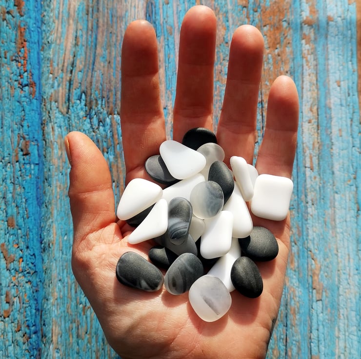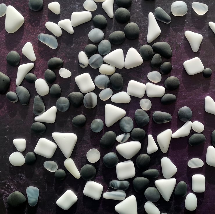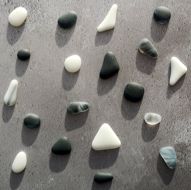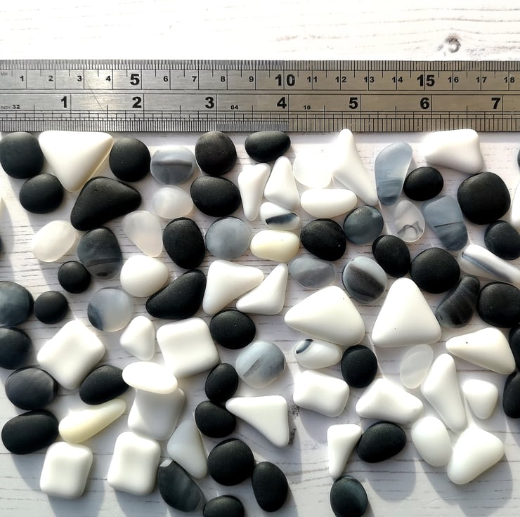 Mixed bags of tumbled glass. Different sizes and shapes. Most pieces measure between 1 - 2.5cm. Ready to be transformed into your own art projects!