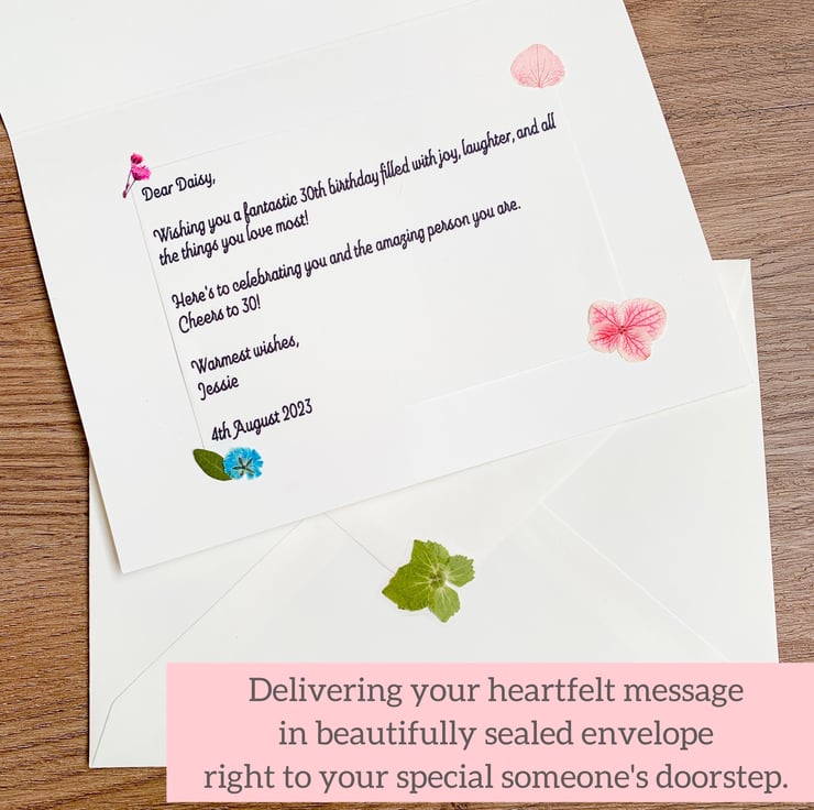 Blank inside for your special message. You could also add a personal touch to insert your heartfelt message, seal with a flower sticker and deliver right to your special someone's doorstep.