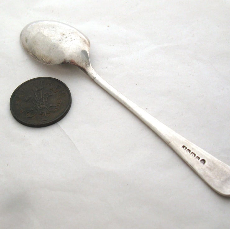 I will post you (first class) the spoon shown in the photos. It is approx. 13cm long and it is vintage and pre-owned with wear marks as described above. The black ink in the lettering is a water-based acrylic which says it is non-toxic. Hand washing is recommended. If you can be bothered.