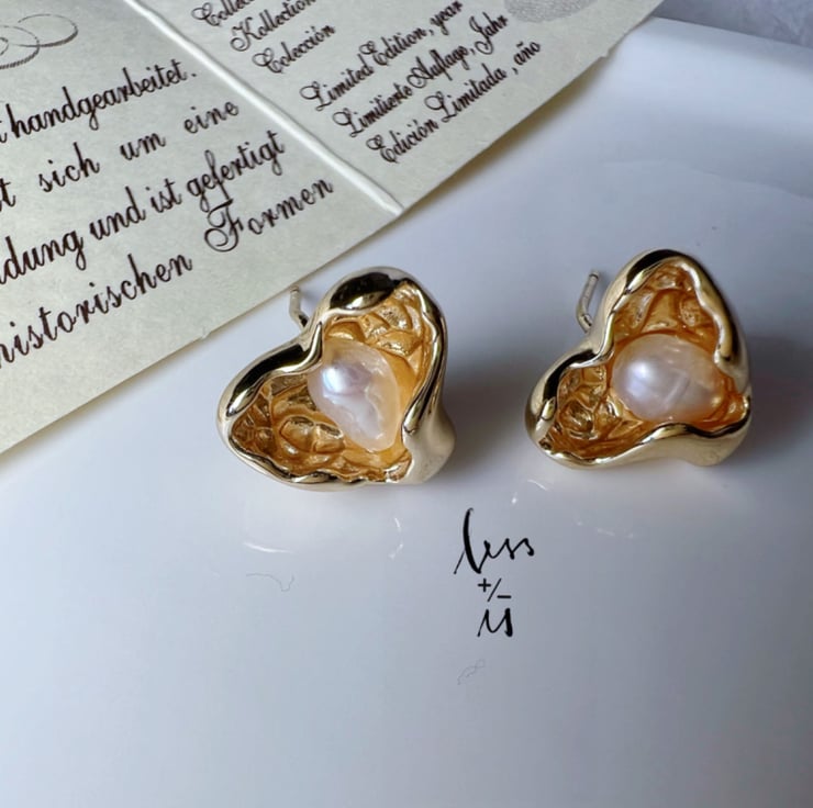 I feel safe and happy at that moment. Just like this handmade work, the heart-shaped shell embraces the lustrous freshwater pearls.