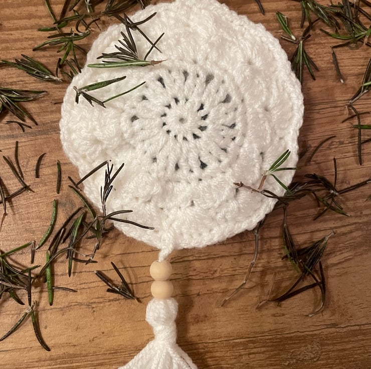 This crochet Rosemary Sachet is filled with home grown in Yorkshire Rosemary.