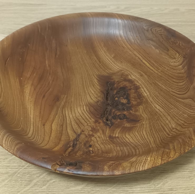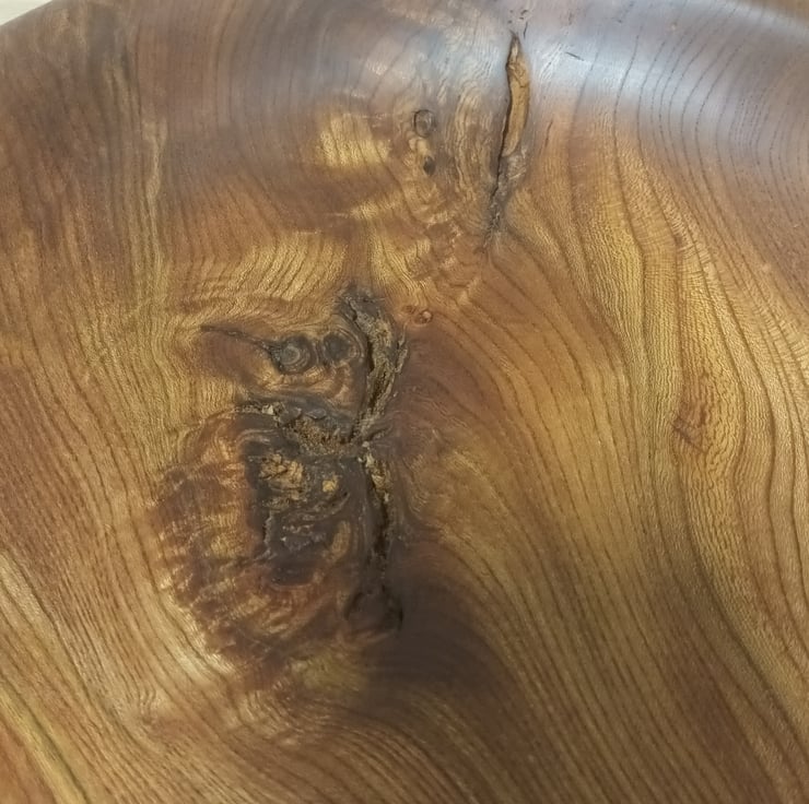 Hand turned Elm fruit bowl. Highlighted with natural inclusions. Sanded oiled and buffed to a beautiful soft sheen.