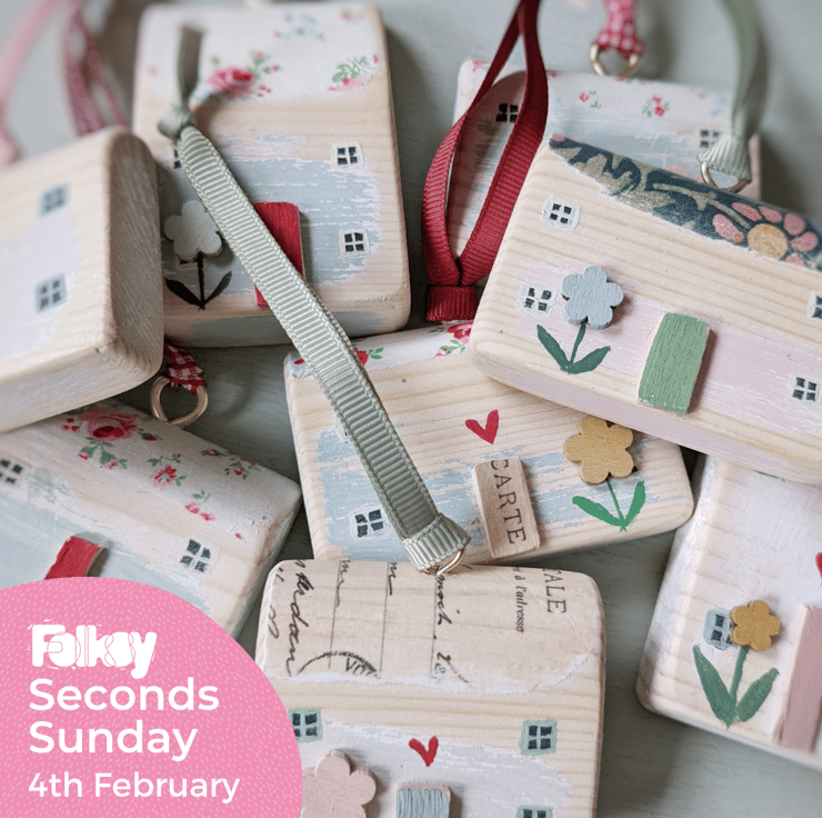 A little painted hanging house which has a bit more wear and tear than usual, chippy paint or a bit tatty decoupage, this one is being sold as a second.