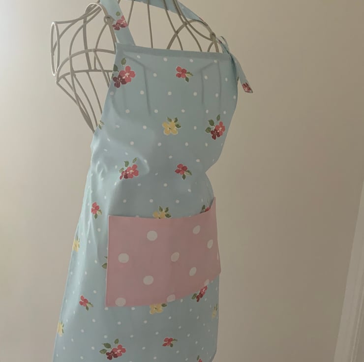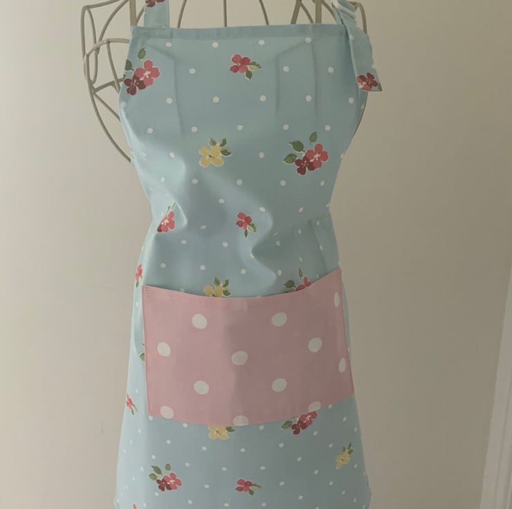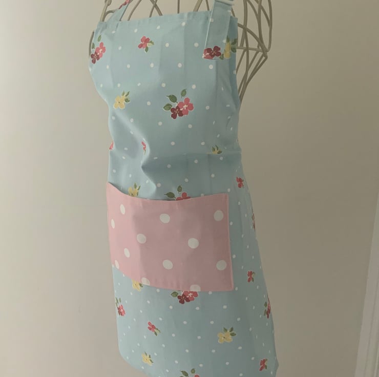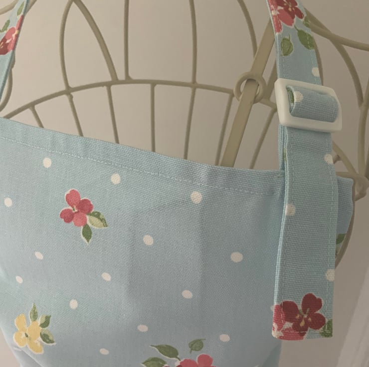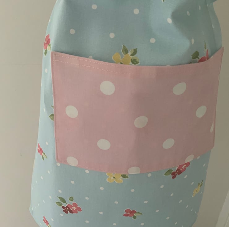 Pretty childrens apron with centre pocket and an adjustable neck strap.