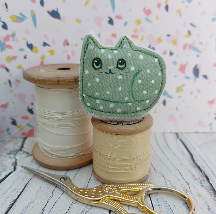 Measuring just 4cm tall this tiny cat will delight a cat lover, painted onto fabric using fabric paints and sewn onto two layers of thick felt and lightly stuffed, it can sit independently.
