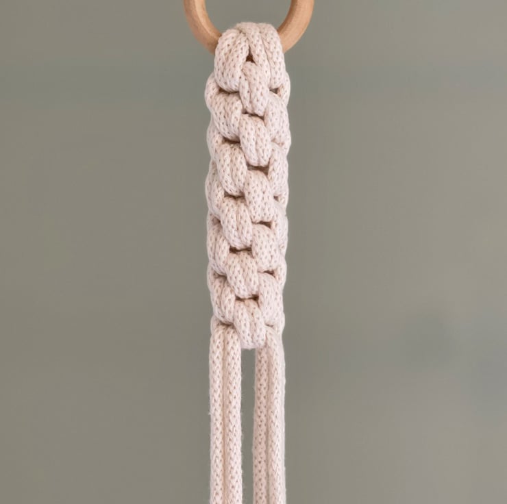 This plant hanger is 90cm in length from the top of the wooden ring to the bottom of the tassel. This measurement will shorten slightly when your plant pot is added. To adjust your plant hanger - simply slide the beads along the cords to sit just above the rim of your plant pot.