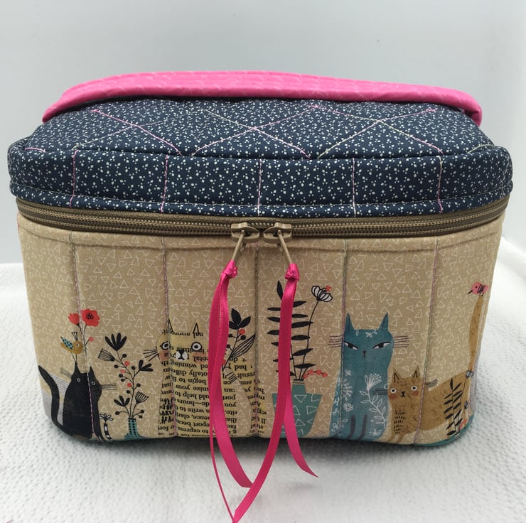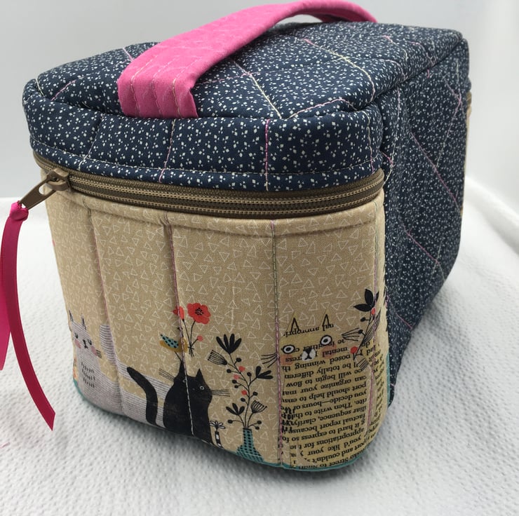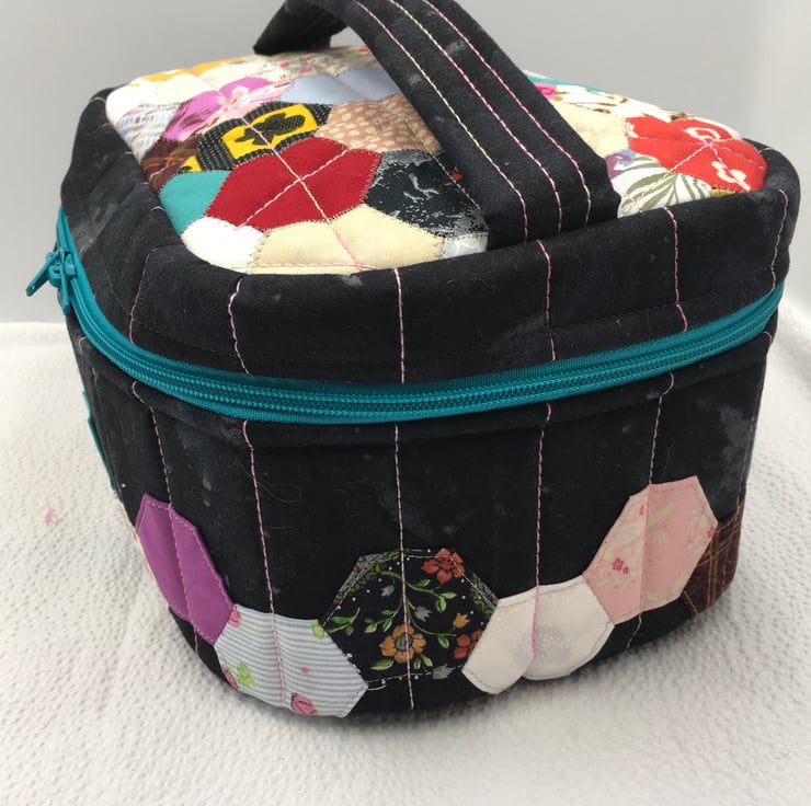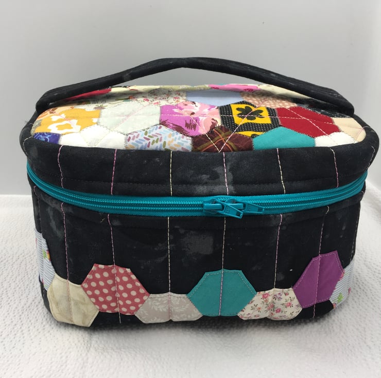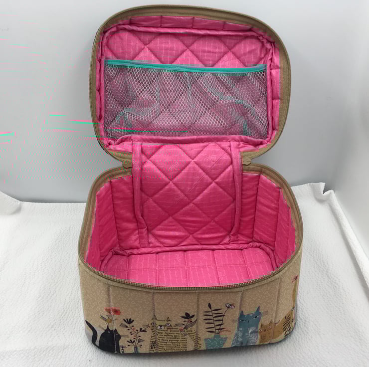 A Vanity Case for many uses, beauty, craft, hobbies etc. It’s free-standing and has a nice padded handle for carrying. The inside of the lid has a very useful mesh pocket for smaller items and a spacious interior with easy access.