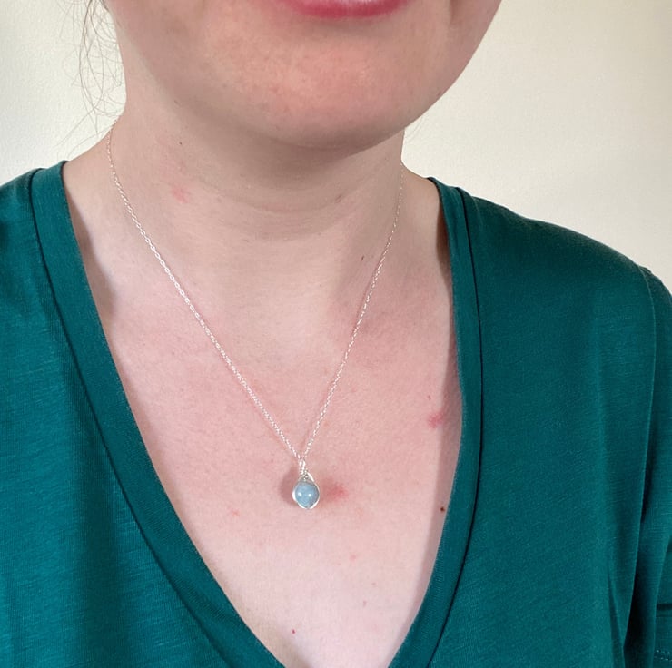 I make a range of drop necklaces in this style. I like the fact the wire wrapped style looks classic, but does not age. I have made these necklaces for over 10 years, but always kept the style simple and easy to wear.