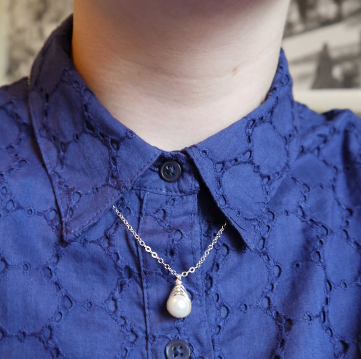 I make a range of drop necklaces in this style. I like the fact the wire wrapped style looks classic, but does not age. I have made these necklaces for over 10 years, but always kept the style simple and easy to wear.