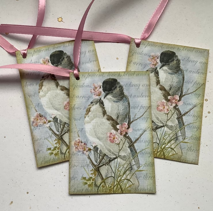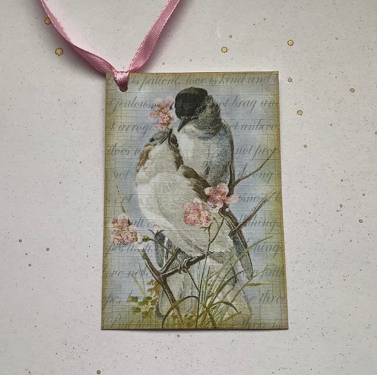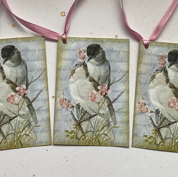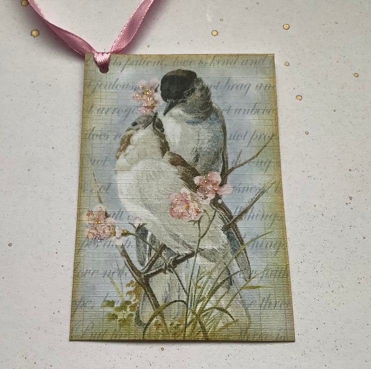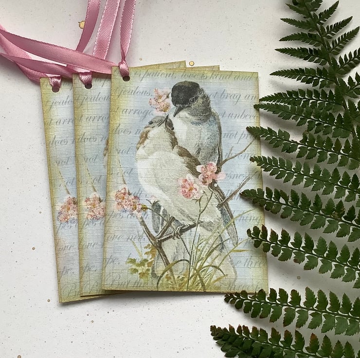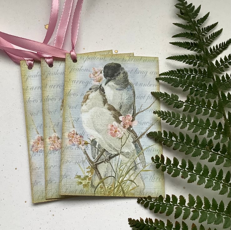 GIFT TAGS . Vintage style.' Lovebirds '( set of 3) Valentine .Wedding.