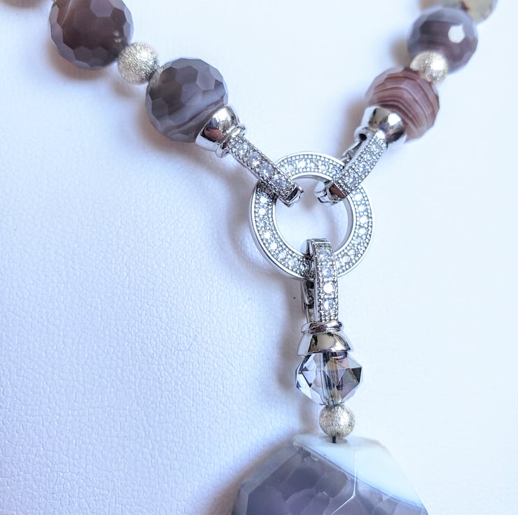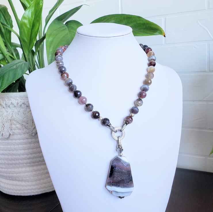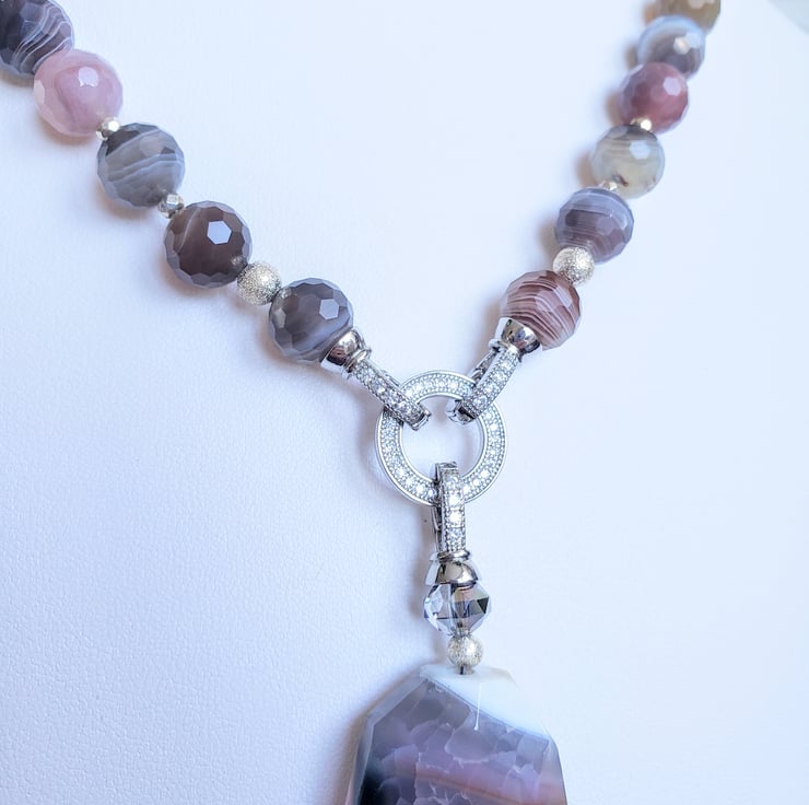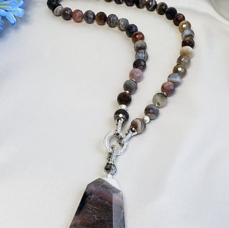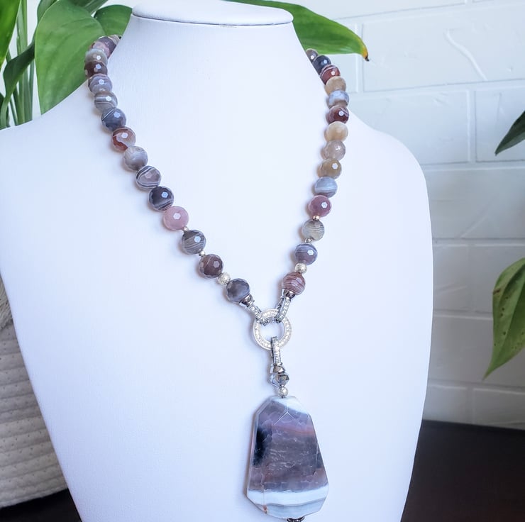 This necklace made with 10mm faceted Botswana Agate beads and silver plated Czech beads