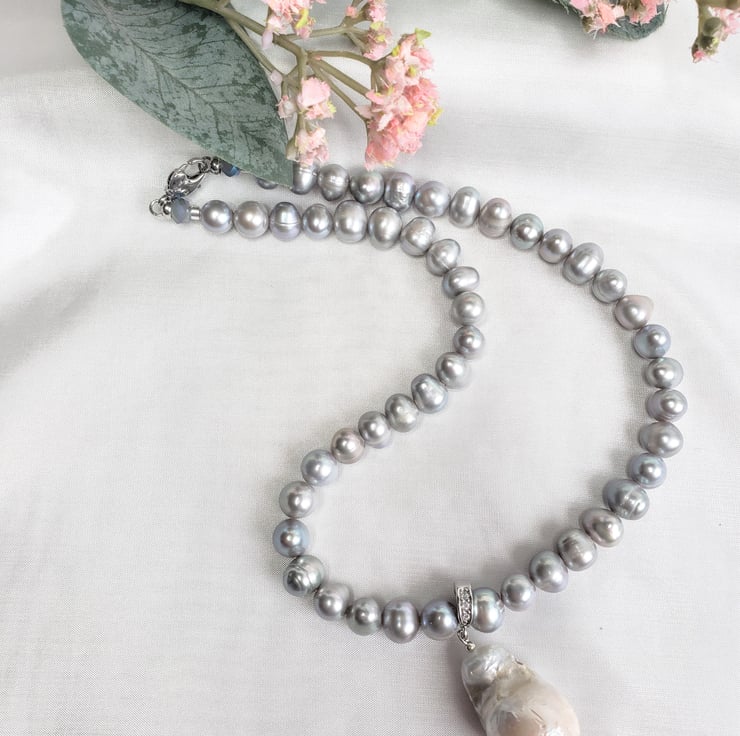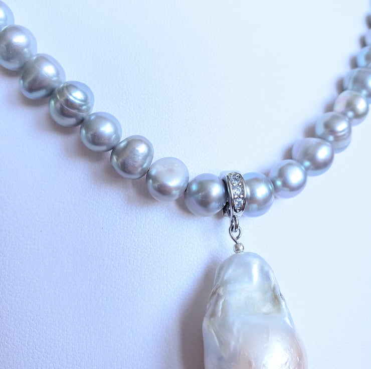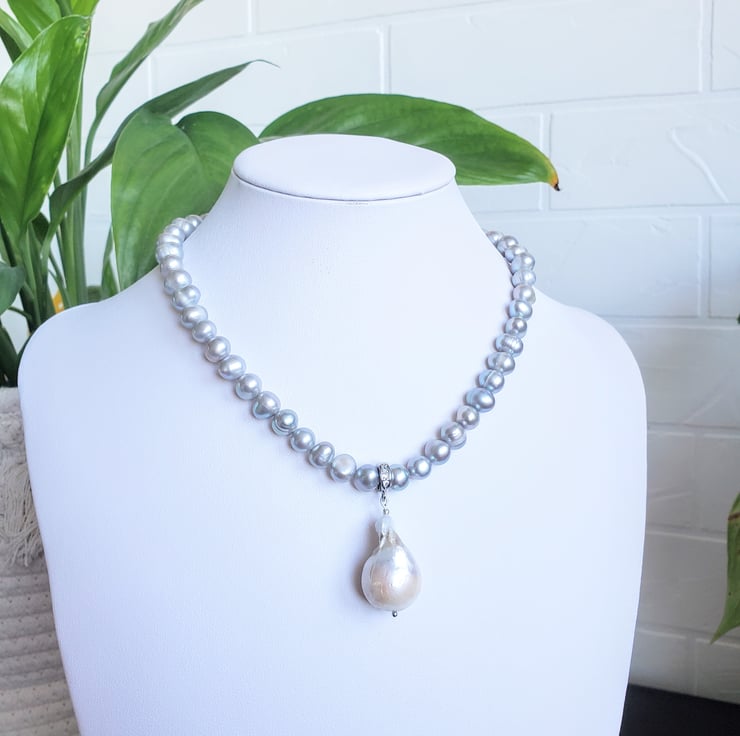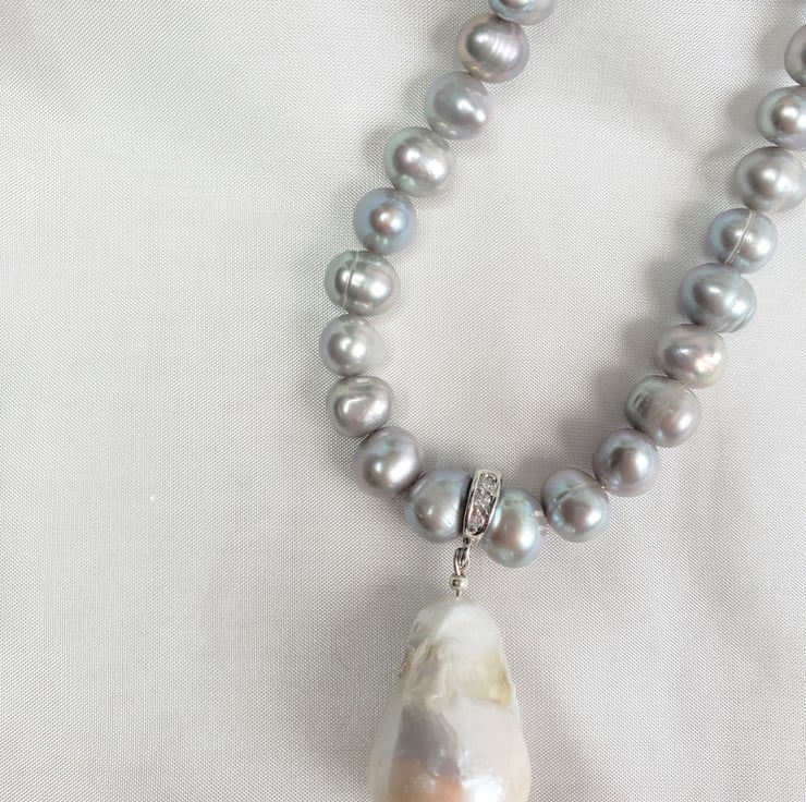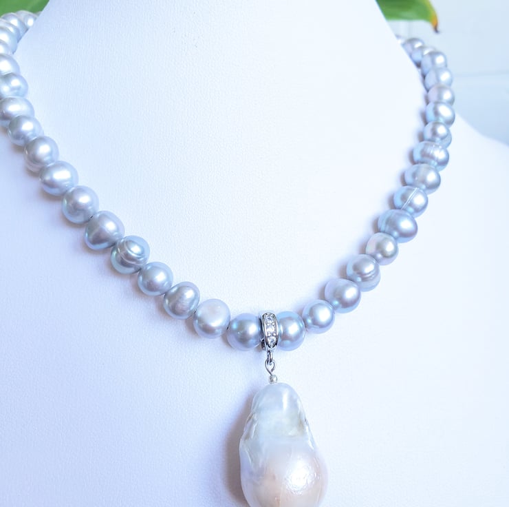This is blue Pearl choker with removable Baroque Pearl pendant