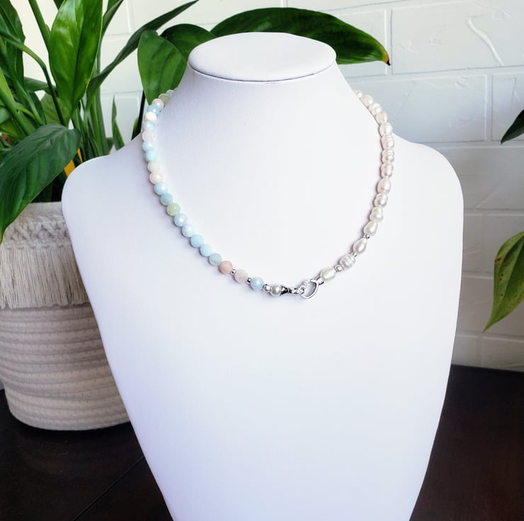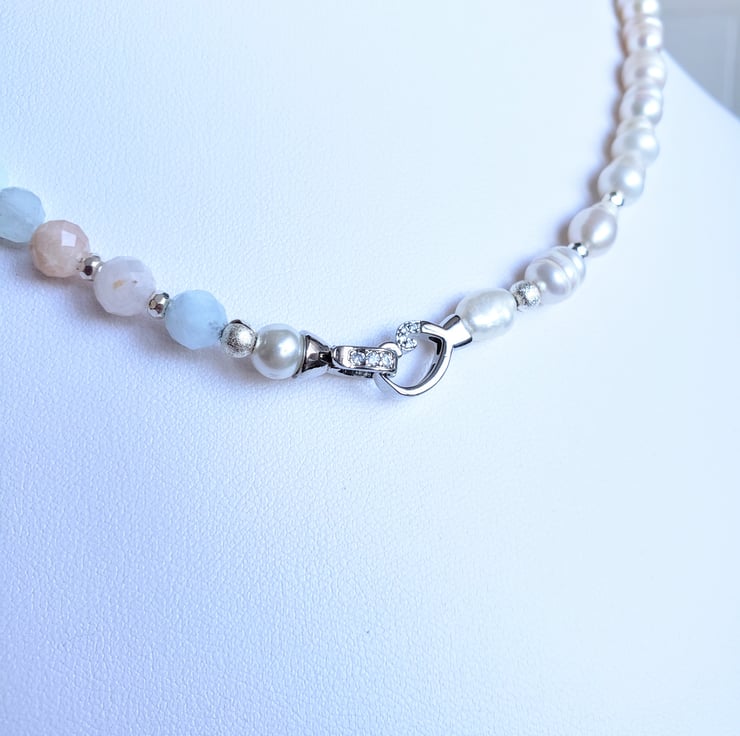 One of a kind Morganite & Freshwater pearl necklace for women.