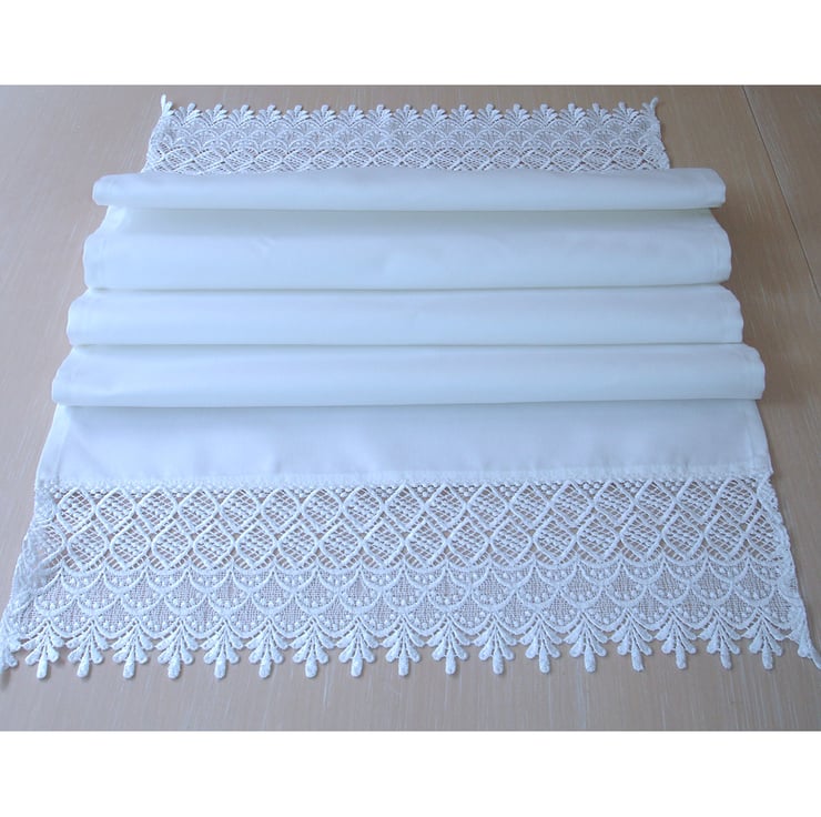 This cloth measures approx 150cm x 35cm (60" x 14") and has a 15cm swag lace trim at the shorter ends (included in the measurements).