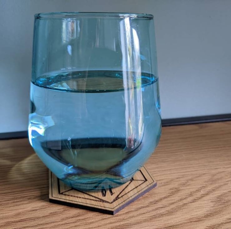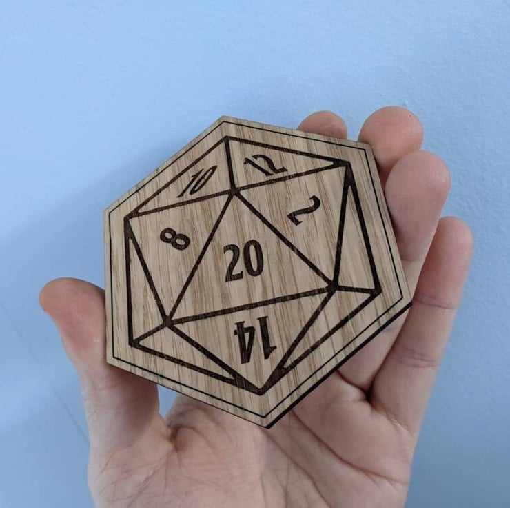 This article is a quality-finished, laser engraved D20 shape coaster. The coaster have the D20 shape and it's made on eco-friendly oak veneer wood.