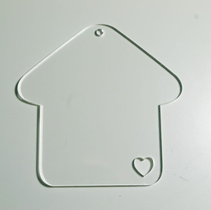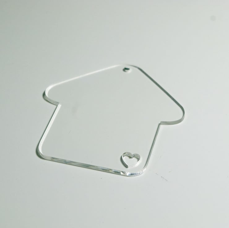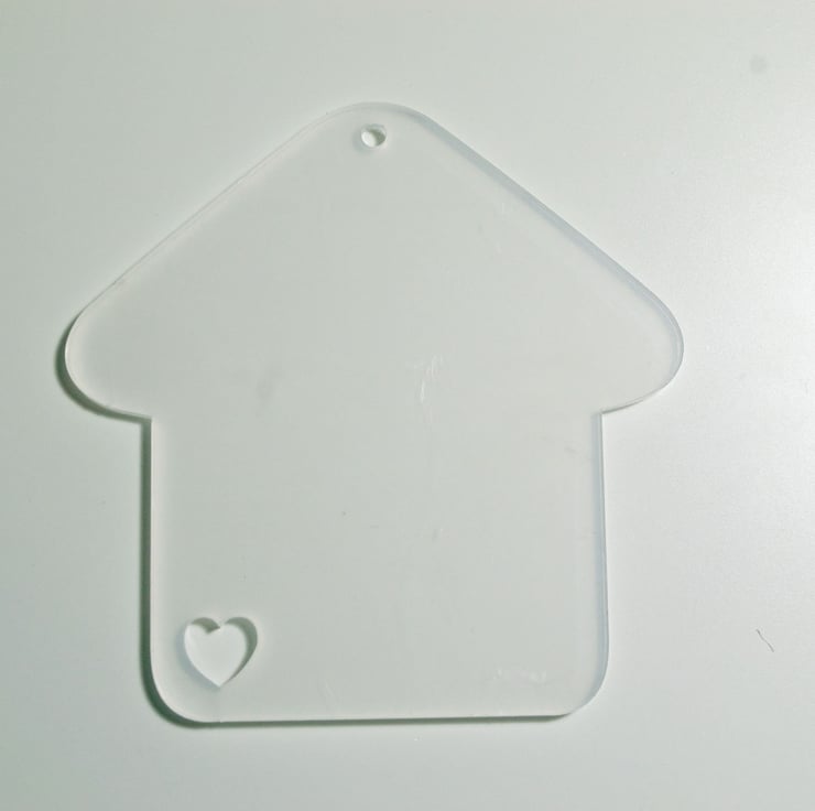 These acrylic disc is shaped as a house and measures 76mm 2.99 in..