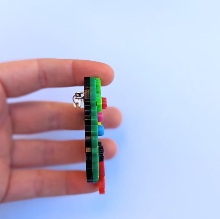 The piece is very sturdy and has 4 levels of acrylic. It's made of 9 different colours of acrylic and has 11 pieces glued one by one. You can buy an extra adaptor to have a 2 for 1 pieces (brooch or necklace).