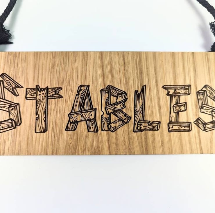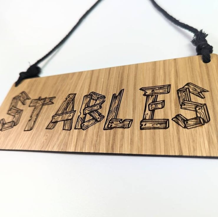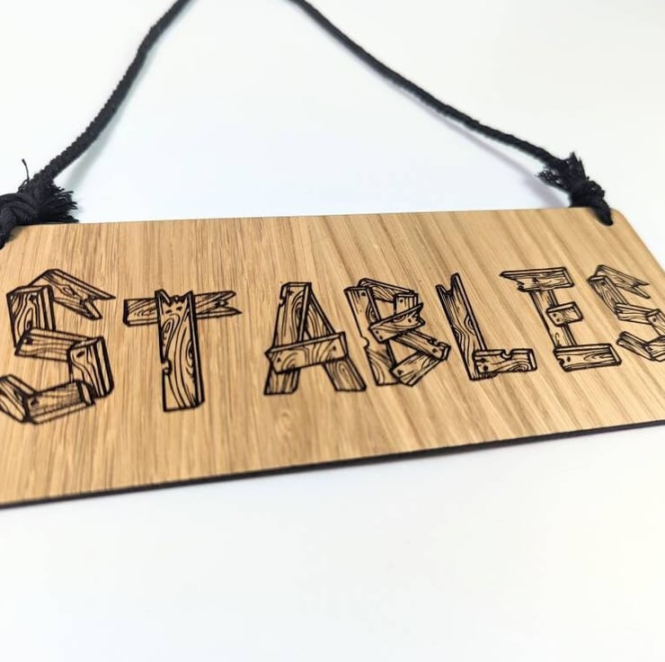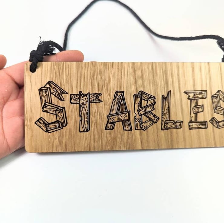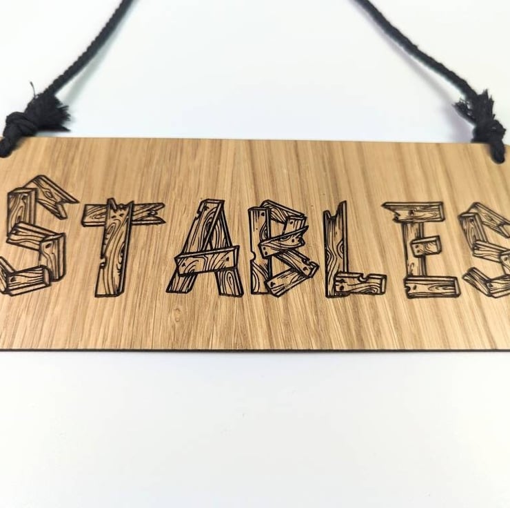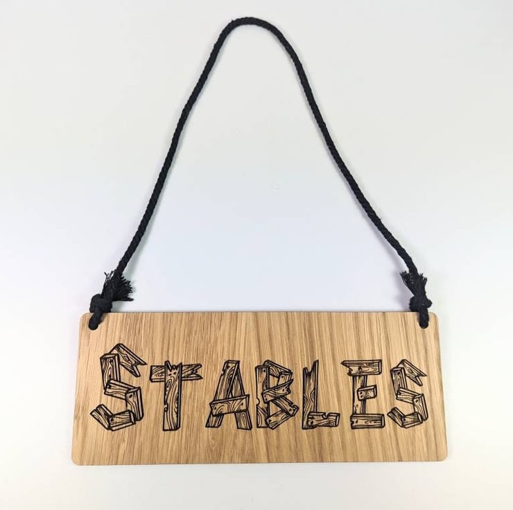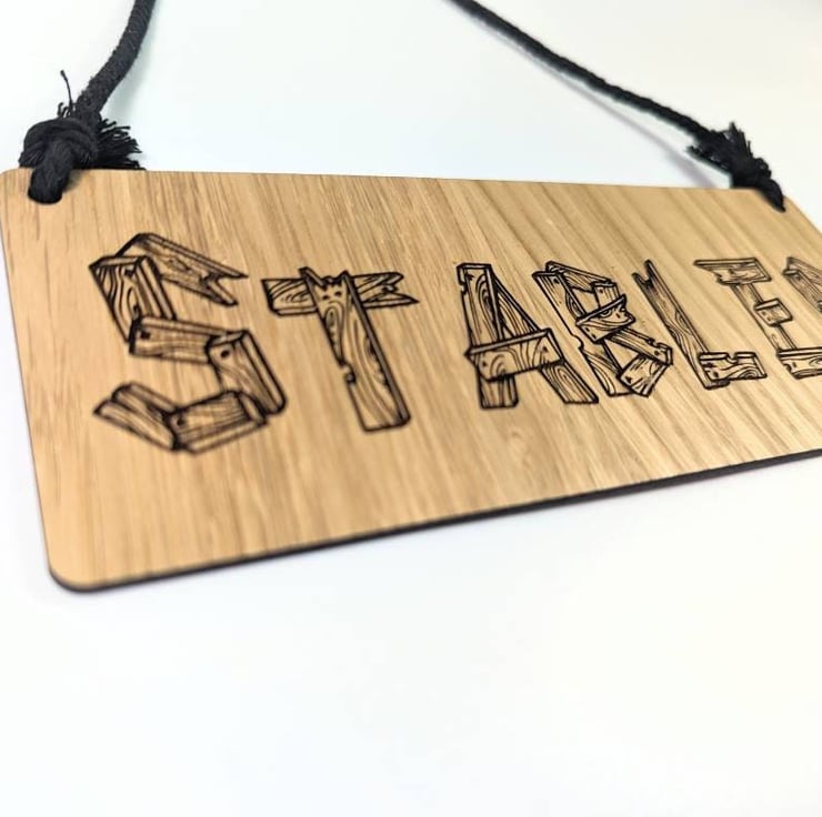 This article is a quality-finished, laser engraved and acrylic door hanger for your stables, room, or stable home conversion. The hanger has a message only in one side. The other side doesn't show messages.