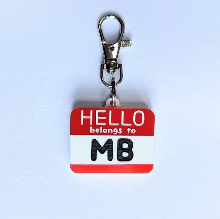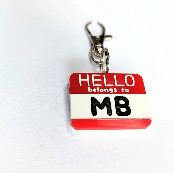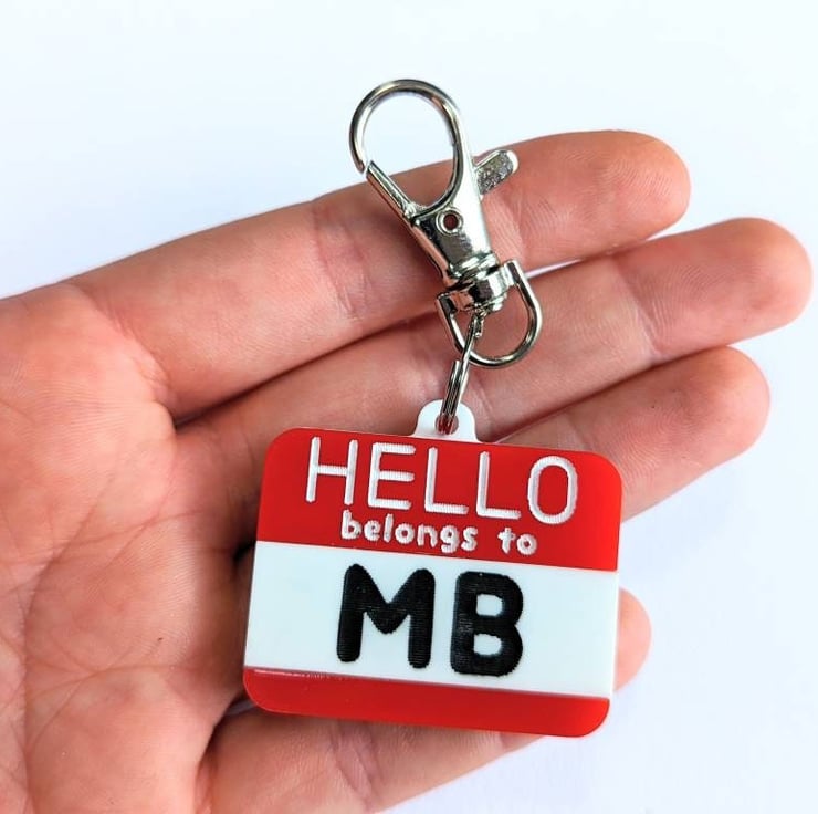 This article is a quality-finished, laser engraved acrylic Tag inspired on the "Hello my name is..." stickers but with the words "belongs to". It is designed as the traditional red colour stickers but if you want to change the colours there is no problem about that. Just send me a message before buying so we can discuss the options. I have plenty of acrylic colours available to choose. I also can change the paint colours for the letters.