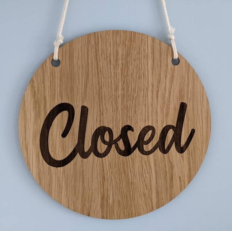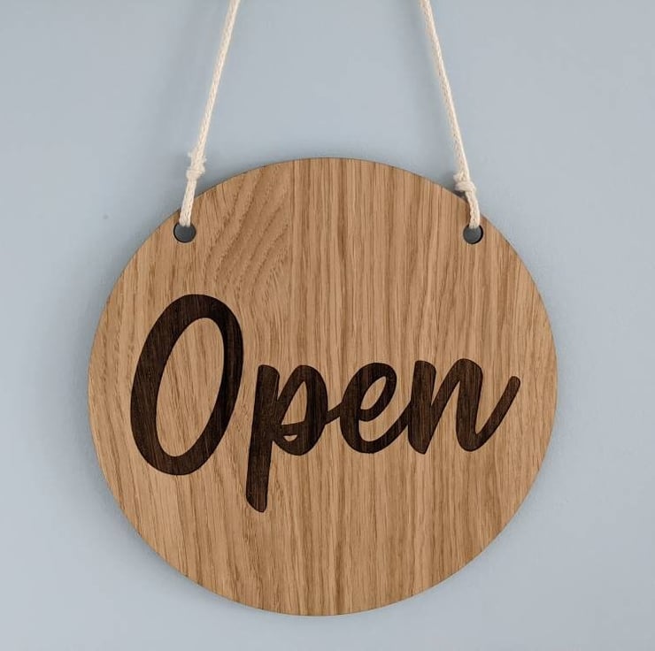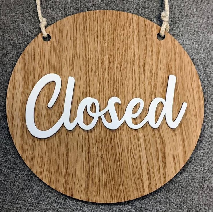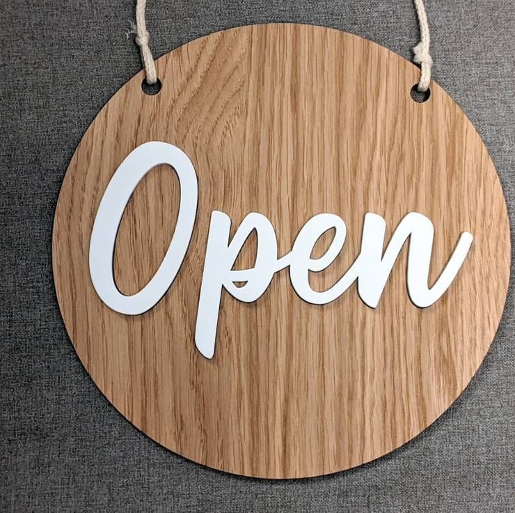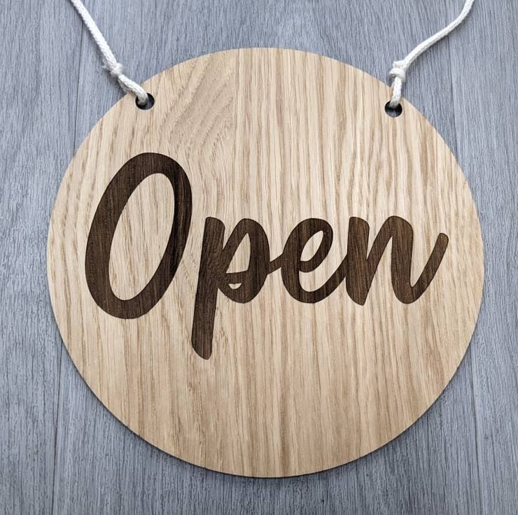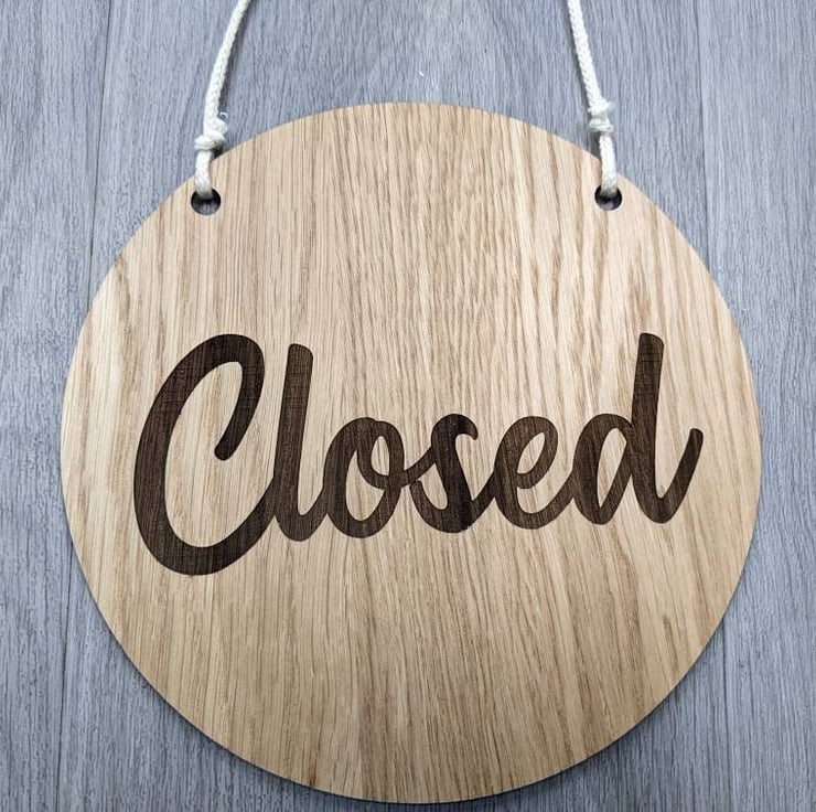 This article is a quality-finished, laser engraved and acrylic door hanger for your shop or office. The hanger is 2-sided and shows 'Open' message on one side and a 'Closed' message on the other side.