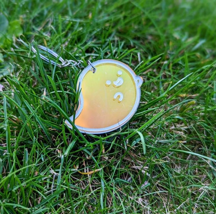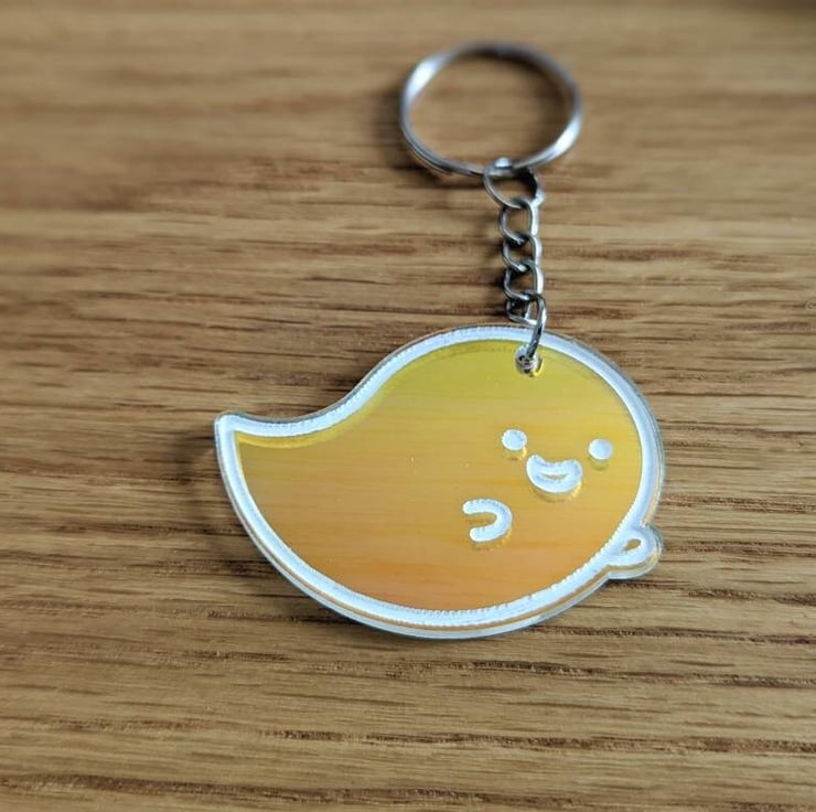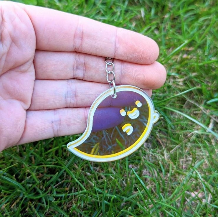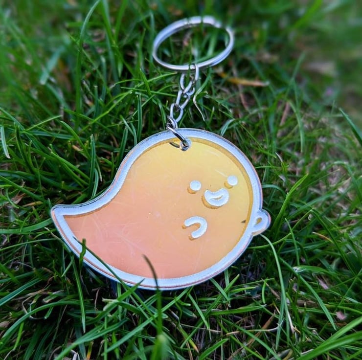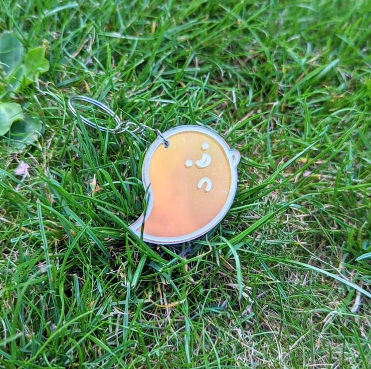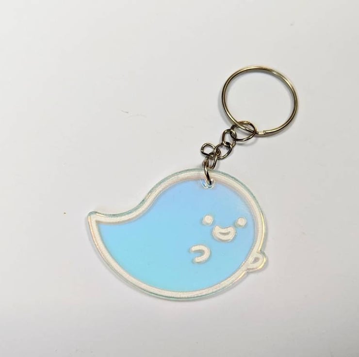 Ghost is made with iridescent translucent acrylic and keyring chain.