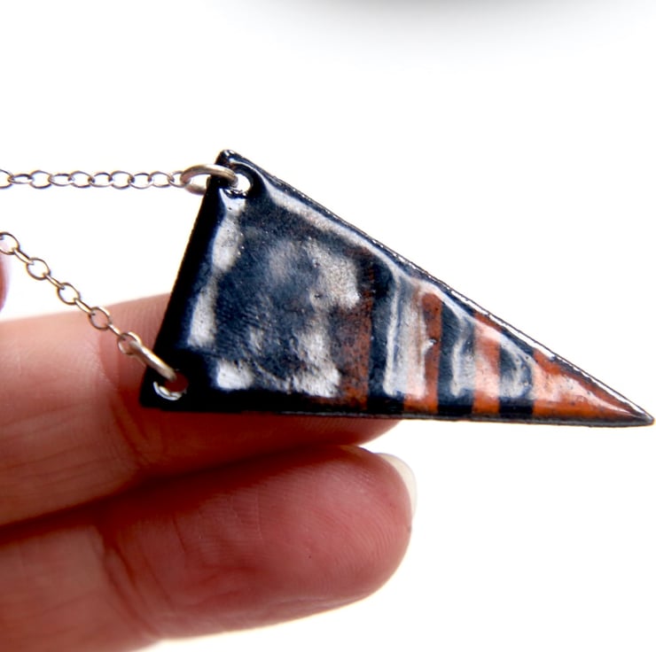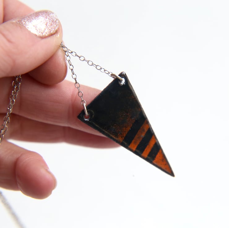 This enamel design is one which I was experimenting with but haven’t added to my range, so now added to my seconds sale. Available in the orange and black colour way and also a red and black version.