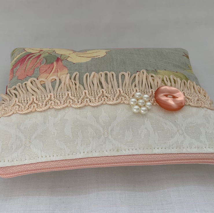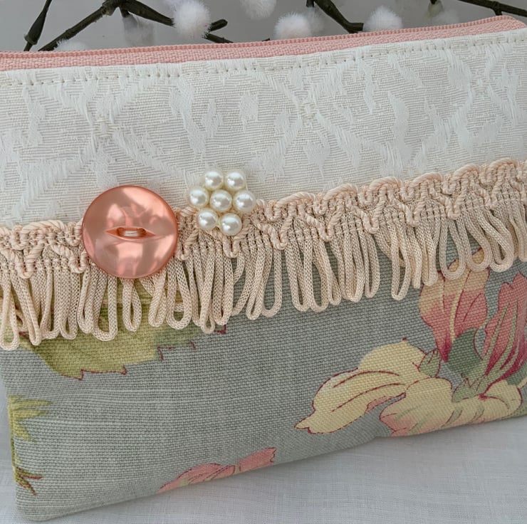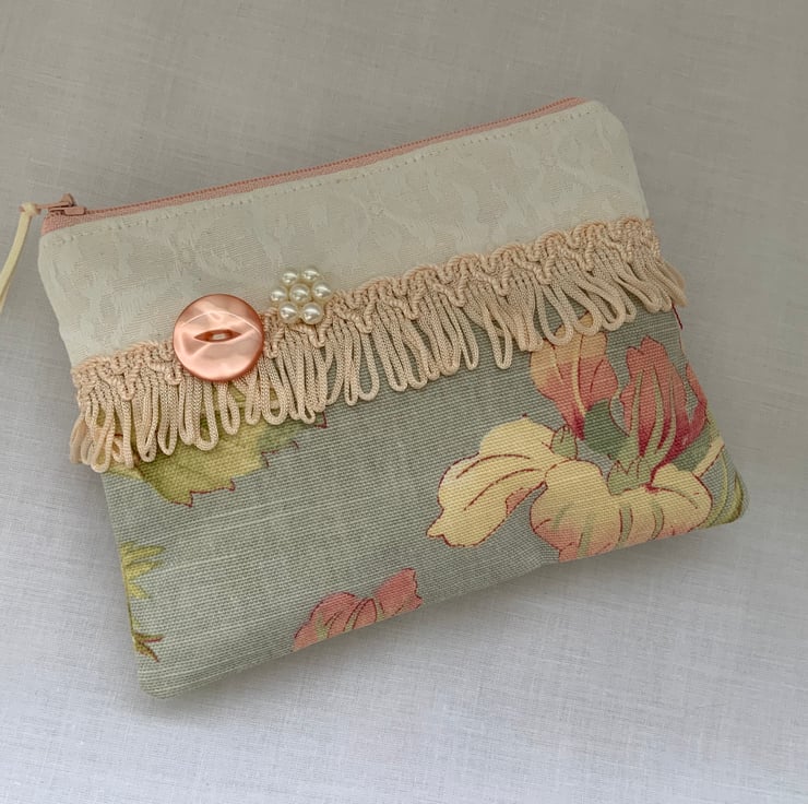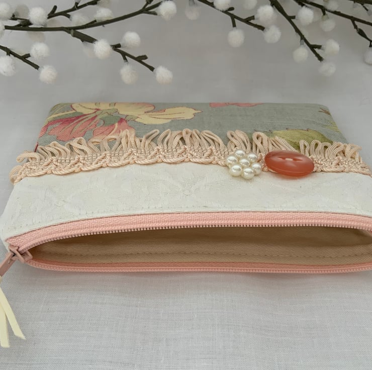 Beautiful vintage zipped purse, accessory pouch, cosmetic bag.