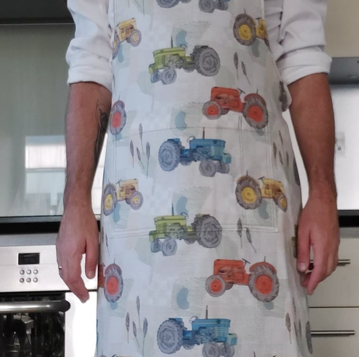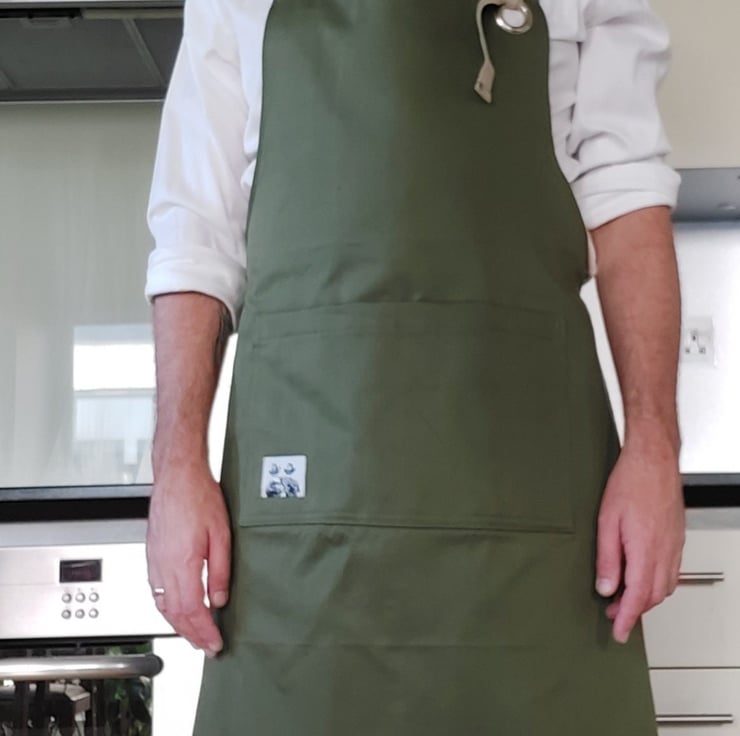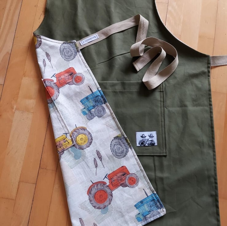 100% cotton twill homecrafted reversible apron.