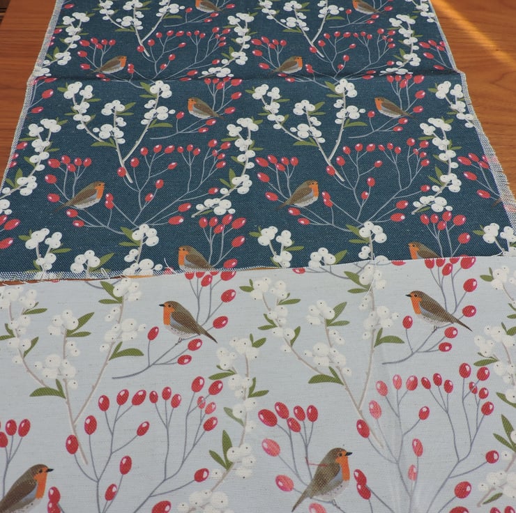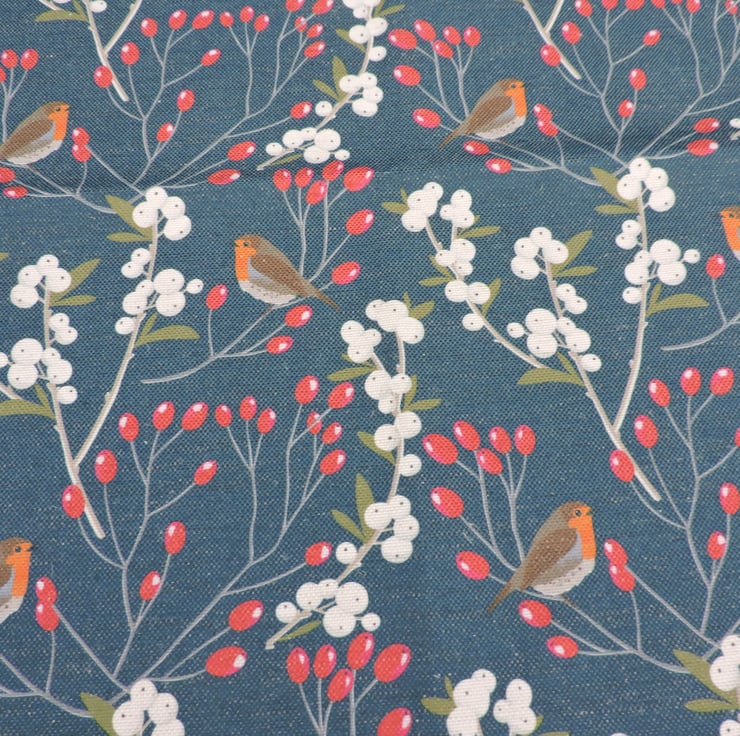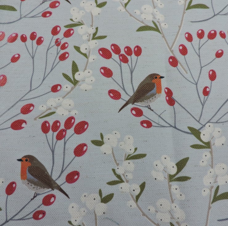 Linen Fabric Remnants - 2 pieces depicting robins and berries.