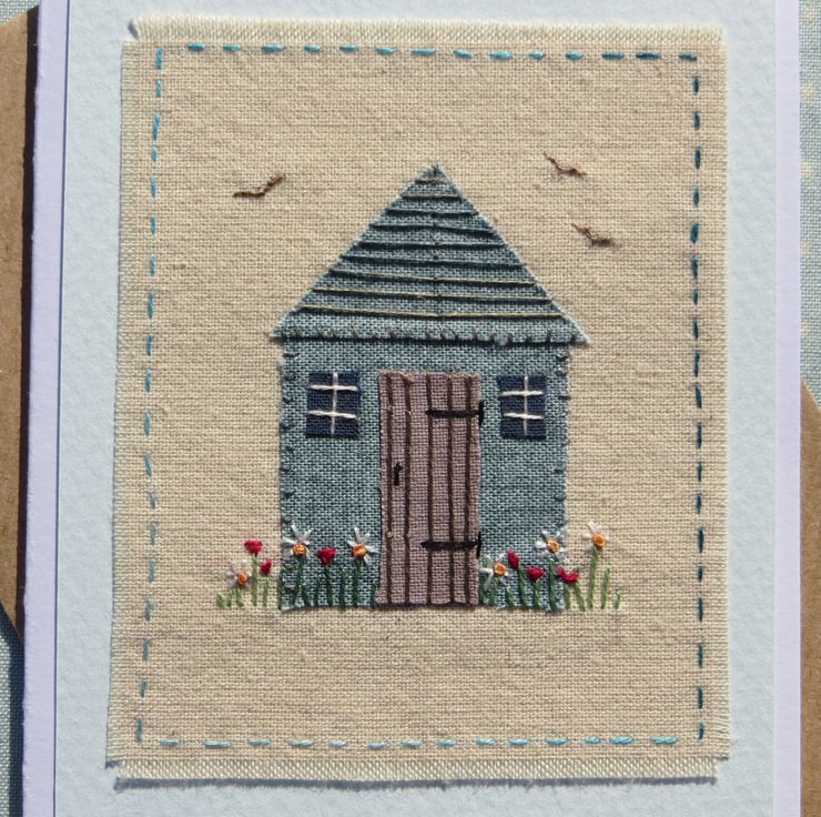 This hand-stitched textile miniature mounted onto greeting card is a gift in itself to keep as well as a card in which to write your message. Lots of intricately embroidered details. Lovely to frame to make a special gift to last!