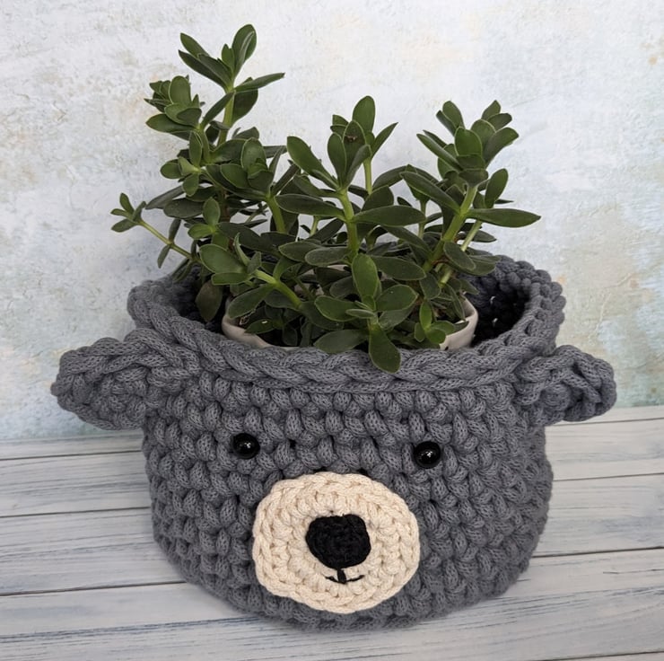 Bear storage basket, Animal themed decor, Toy storage, Plant display, Recycled