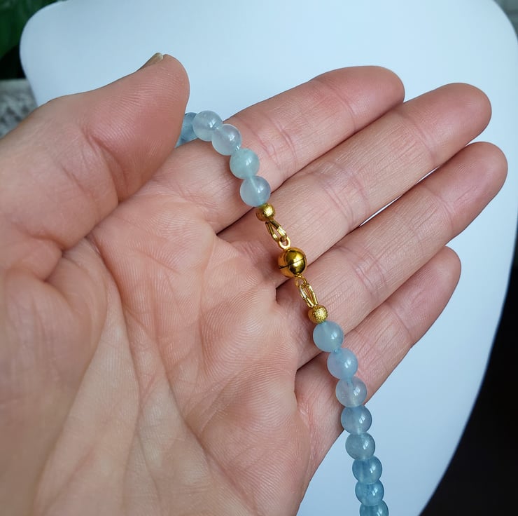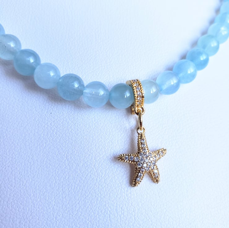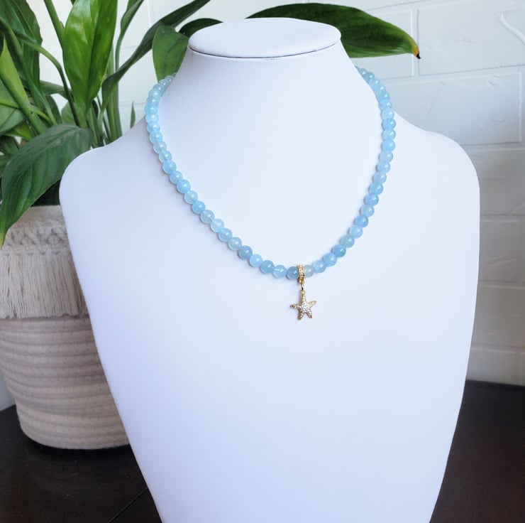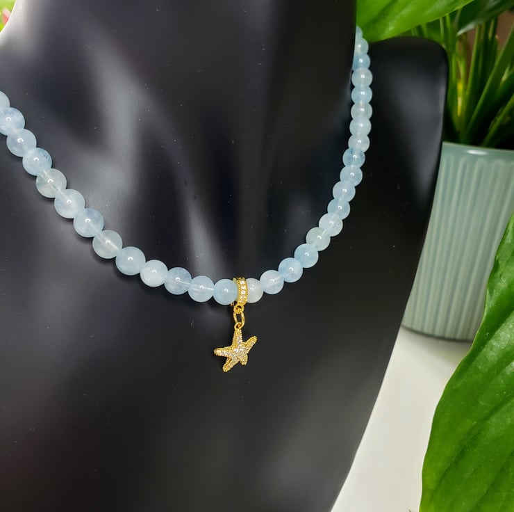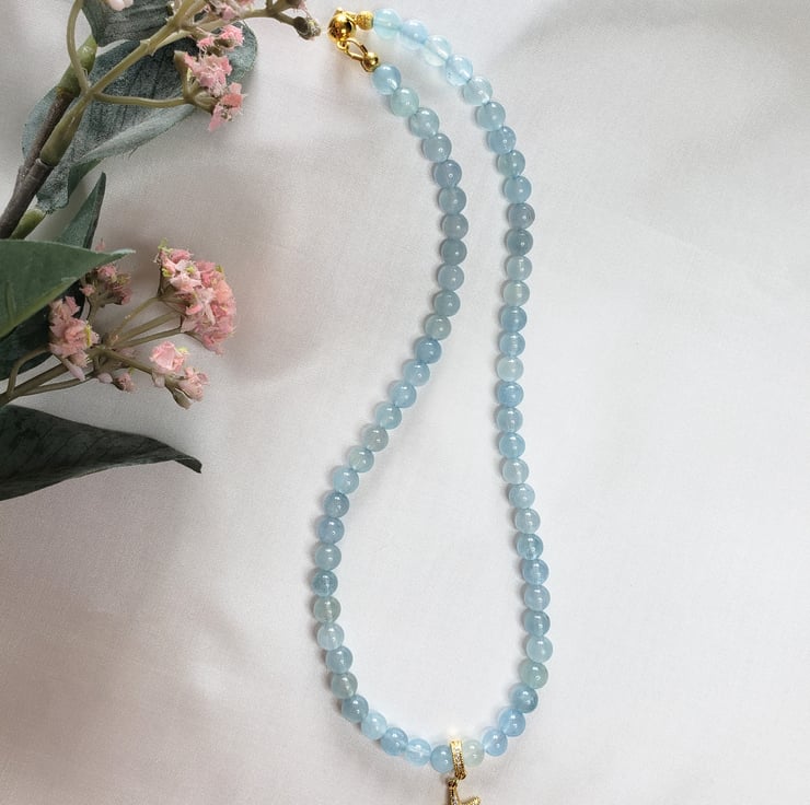Natural AAA Aquamarine beaded necklaces for women complemented with cute little charm