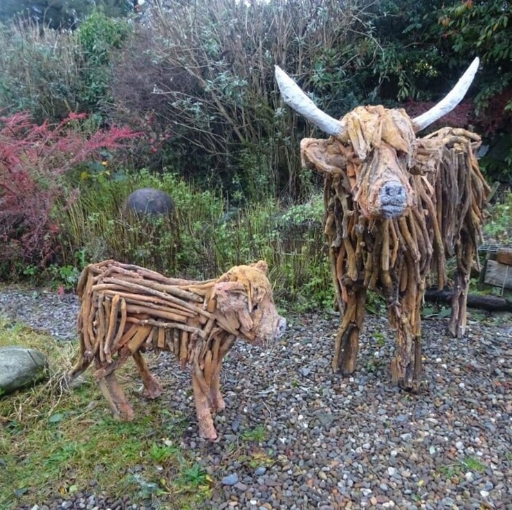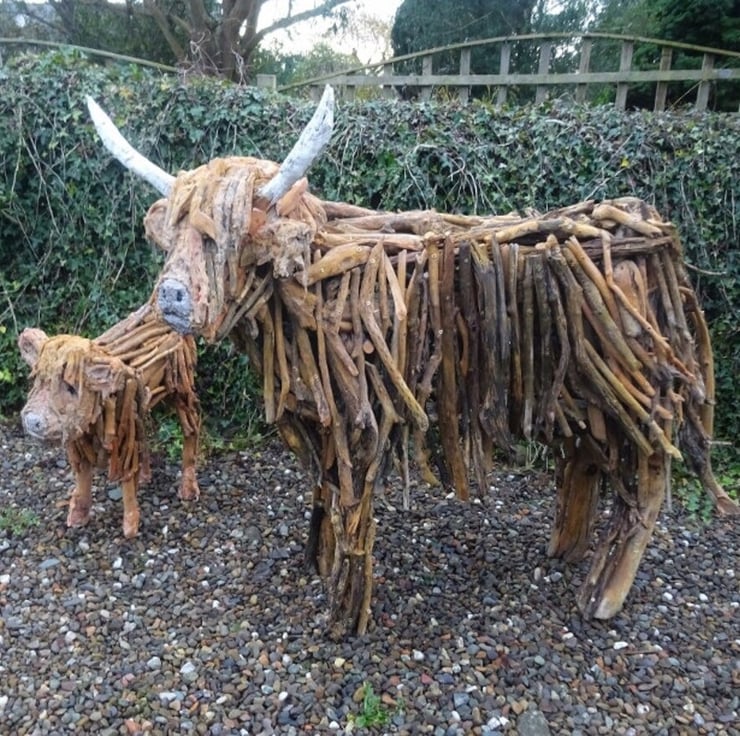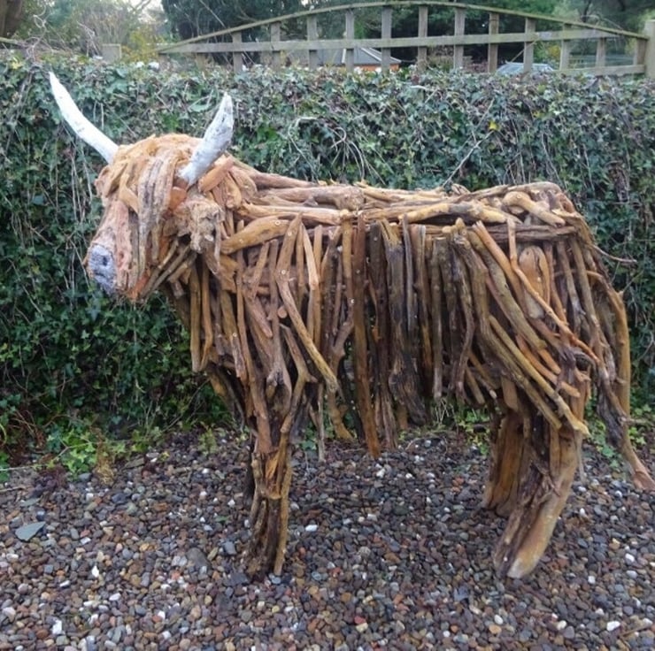 I have always felt that the Highland Cow would be the perfect subject for a driftwood sculpture. The material lends itself to the wild and woolly appearance of this iconic beast.