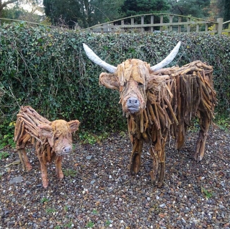This listing is for a bespoke driftwood sculpture of a highland cow and calf. Please note - the photographs are of a previously completed commission and for reference purposes only. Other breeds are available to order including Belted Galloway Cattle.