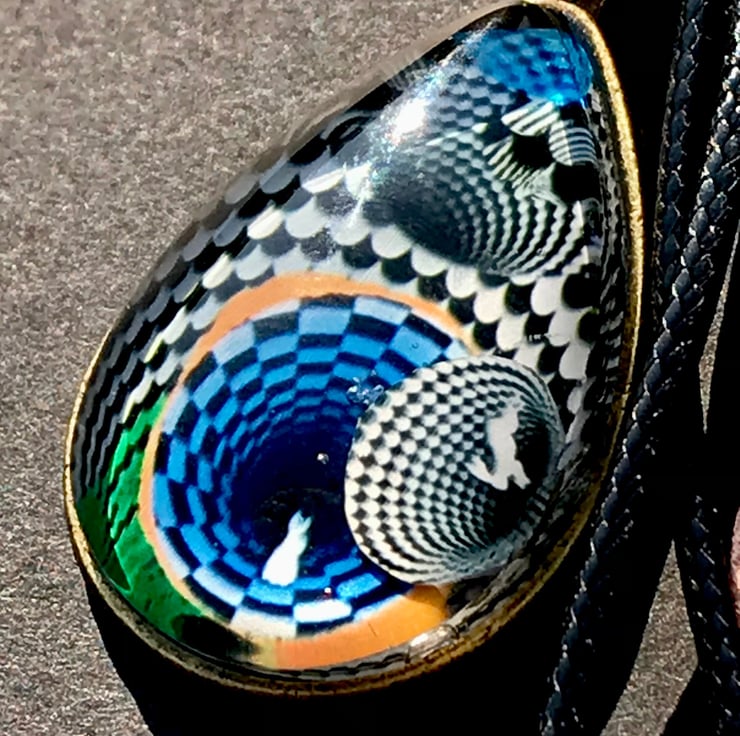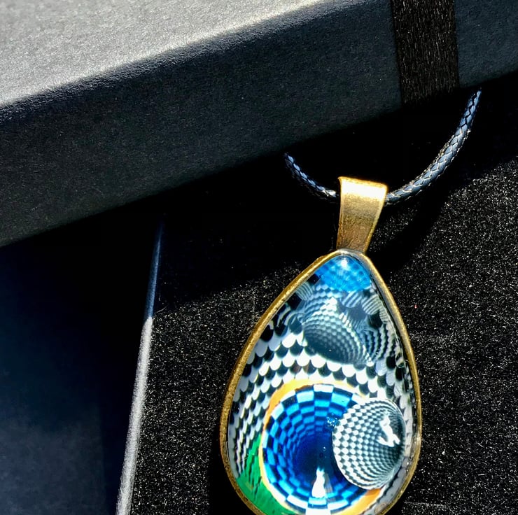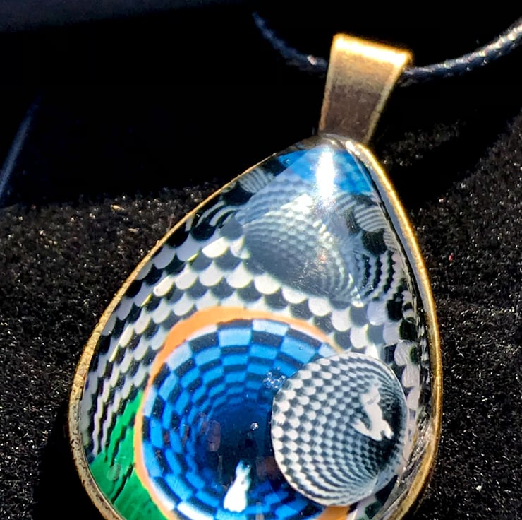 This handmade pendant is a one of a kind piece, a completely original miniature piece of art. Made Using optical illusion inspired by M.C Escher and Lewis Carol