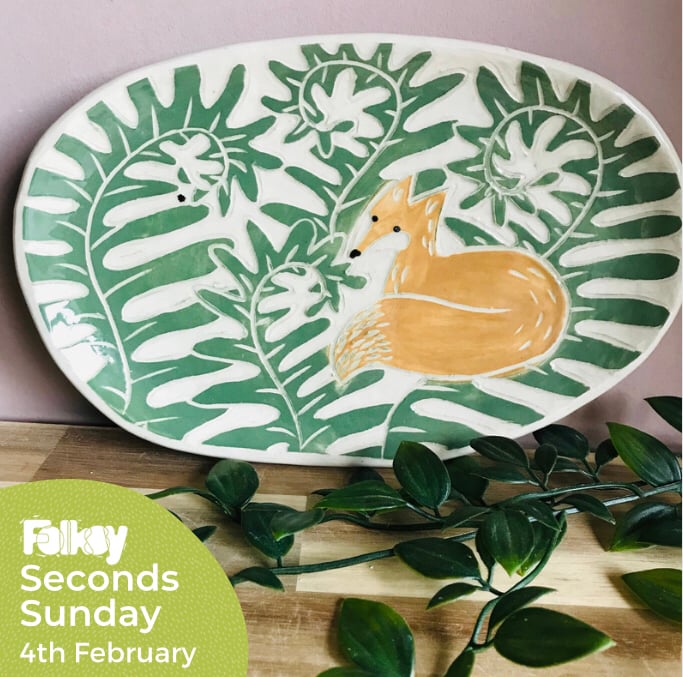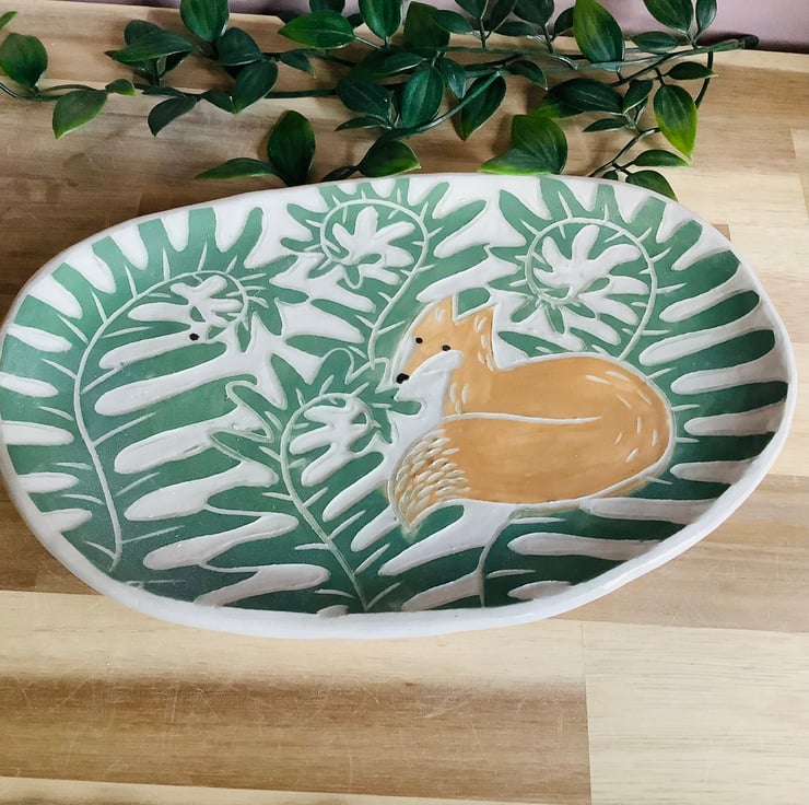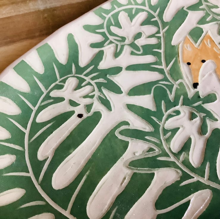 Handmade fox and fern leaf plate is cheerful and stylish and is the perfect size for sandwiches salads and snacks.