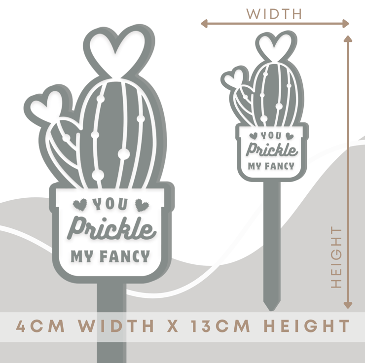 Spice up your Valentine's Day with our "You Prickle My Fancy" engraved acrylic plant tag! This charming accessory is designed to add a touch of humour and love to your favourite cactus.