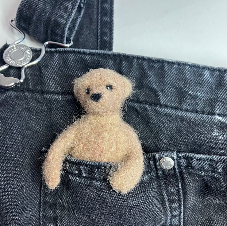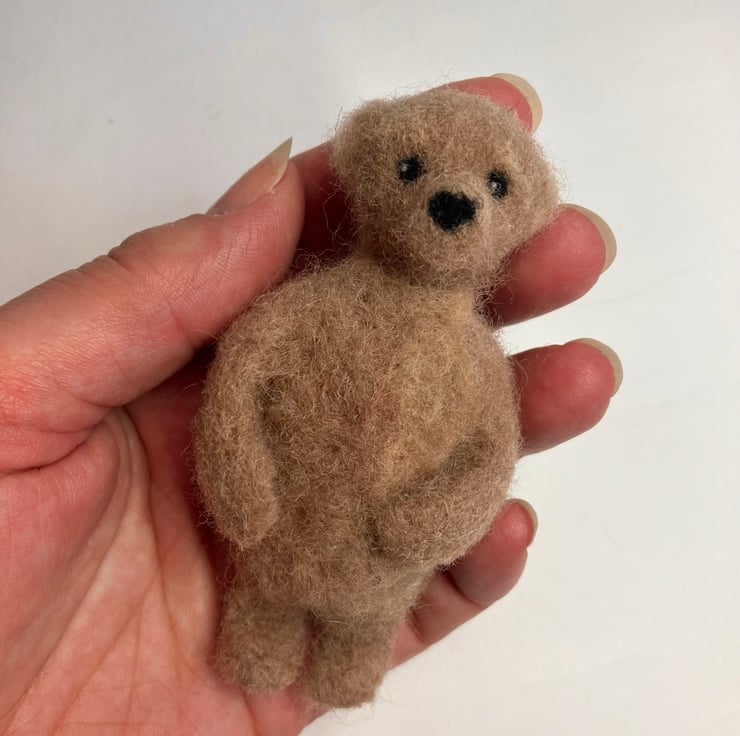 Scruffy little light brown bear, handmade needle felted 9cm tall ...