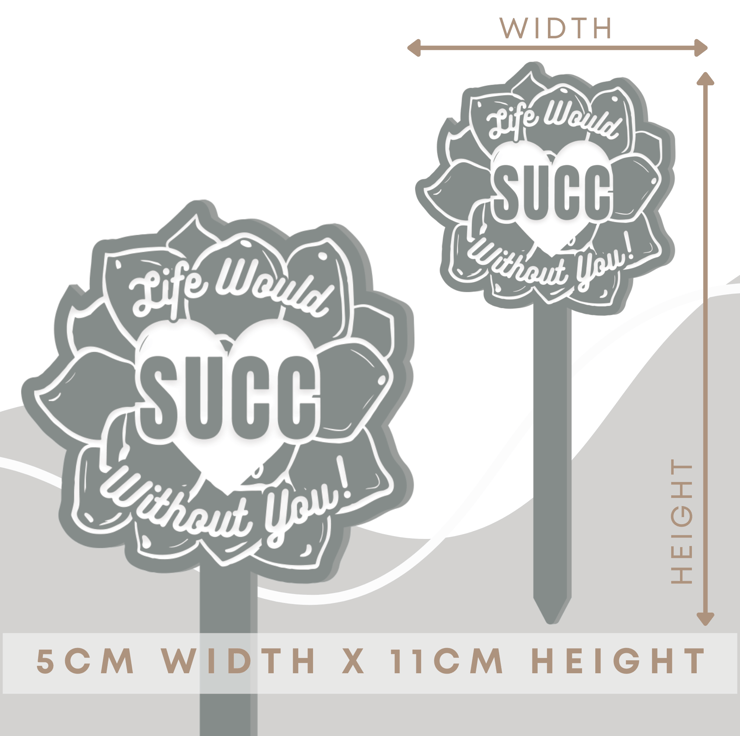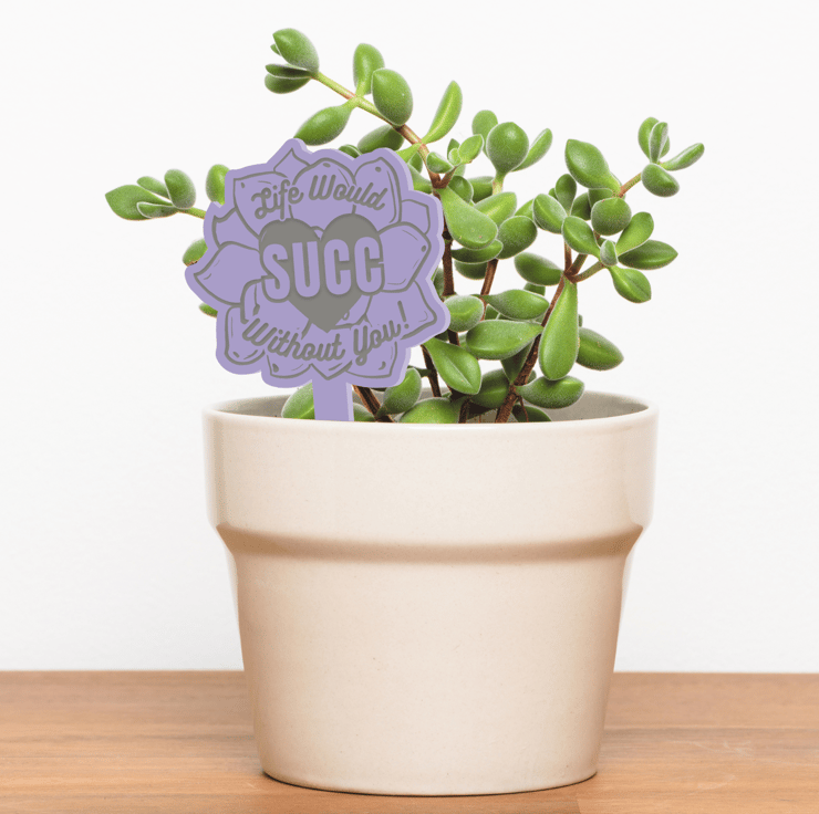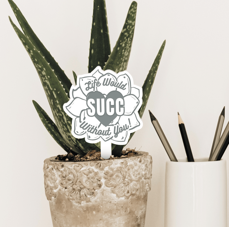 Celebrate love and greenery with our "Life Would Succ Without You" engraved acrylic plant tag! This charming plant accessory is the ideal Valentine's gift for the succulent enthusiast in your life. The tag comes with a convenient stake, making it easy to place in the soil of any potted plant.