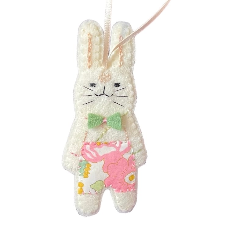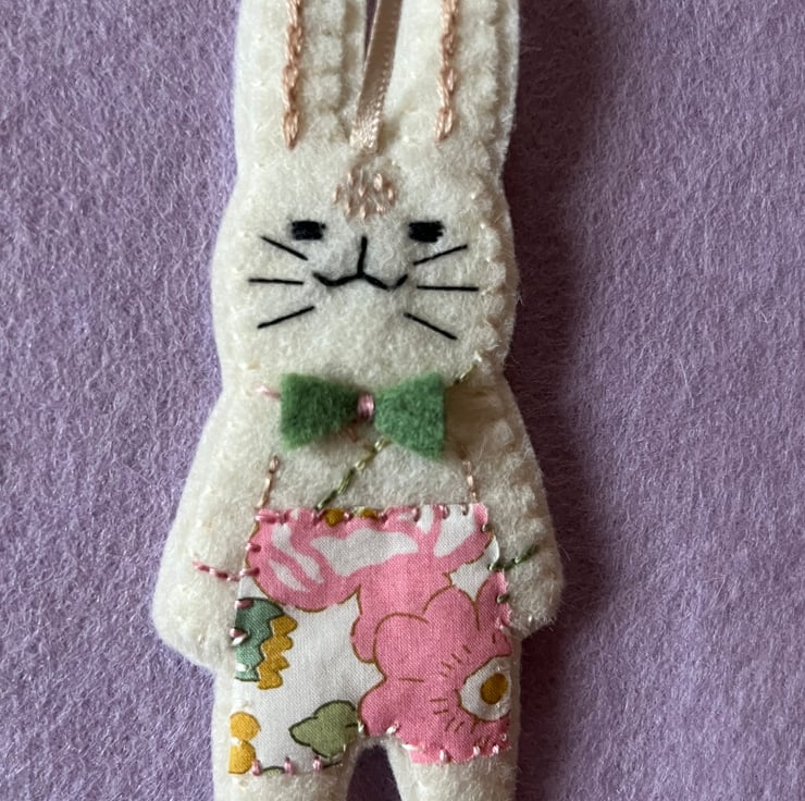 Backed with 2mm felt for stability ,this decoration is hand embroidered and and wearing a ‘Betsy’ shorts.