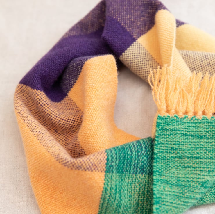 Each collar / cowl is woven using 100 percent lambswool in both the warp and weft.