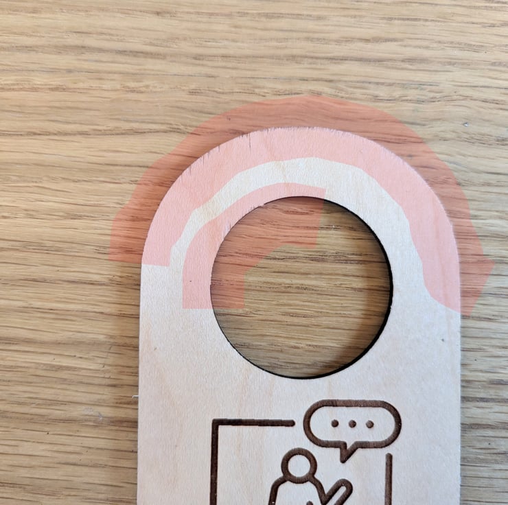 This article is a quality-finished, laser engraved do-not-disturb door hanger. The hanger is 2-sided and show s a do-not-enter message (Meeting in progress) on one side and a welcome-to-enter (Free to enter) message on the other side.