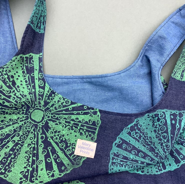 This handy market bag is handprinted using one of my original designs, inspired by sea anemones found on Holkham Beach, North Norfolk.